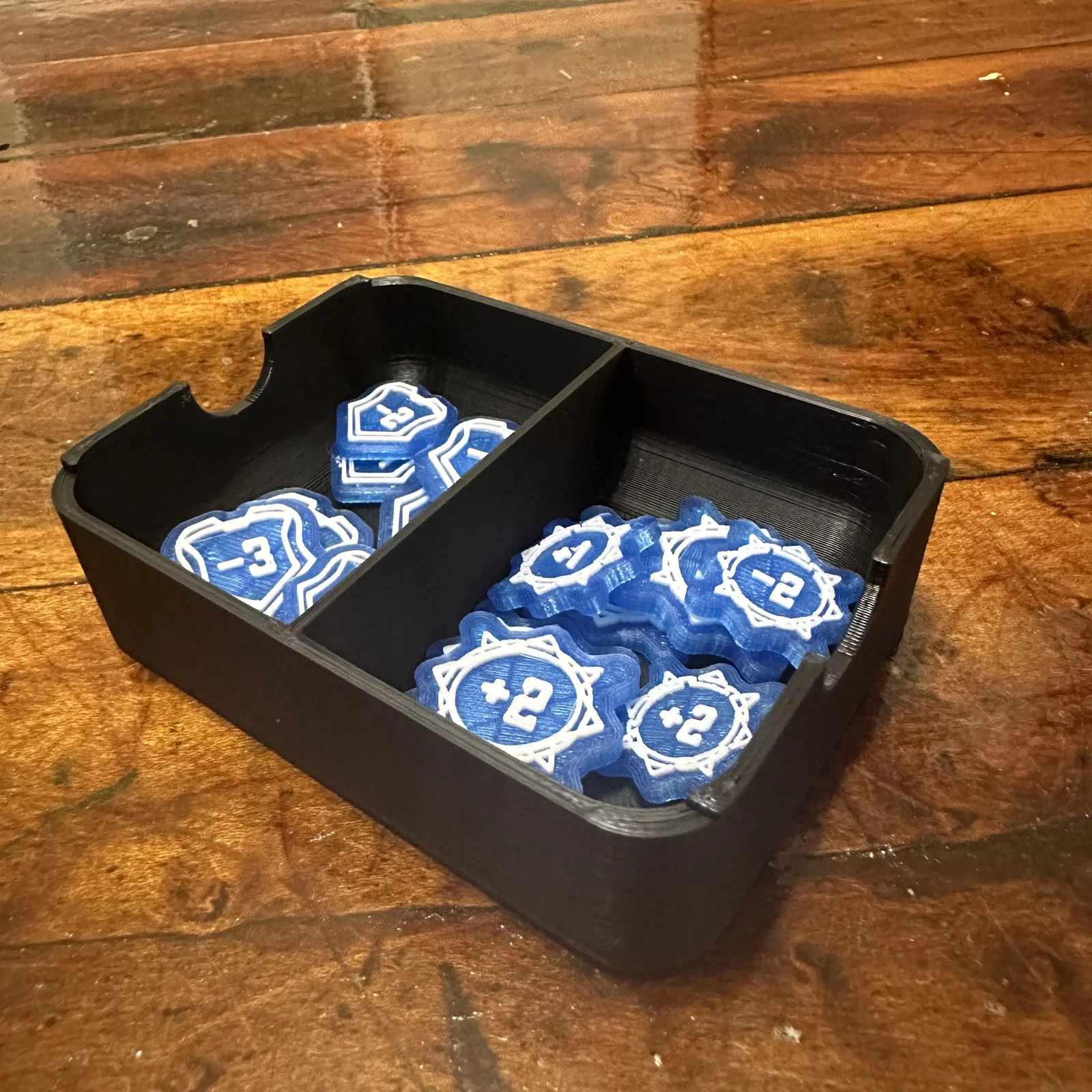 Các token strength và willpower trong hình được in ở kích thước đã scale xuống là 25mm x 20mm x 3mm, layer height 0.1 với nozzle 0.4.