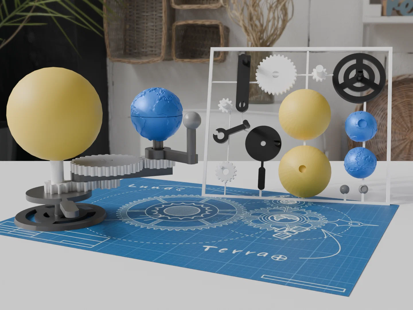 Một mẫu cơ khí dạng Kit Card “Sun Earth Moon Constilllation” dễ in và dễ lắp ráp.