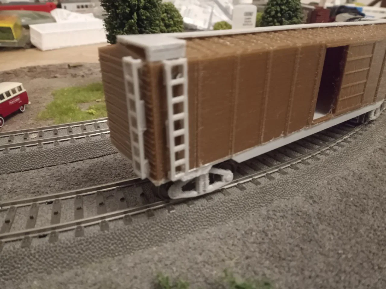 Bộ file in 3D toa hàng American boxcar cho modelrailroading tỉ lệ H0. Các chi tiết có thể in trực tiếp theo màu cần thiết, lắp bogies với wheelsets tiêu chuẩn (khuyến nghị loại kim loại) bằng mount1 và mount2.