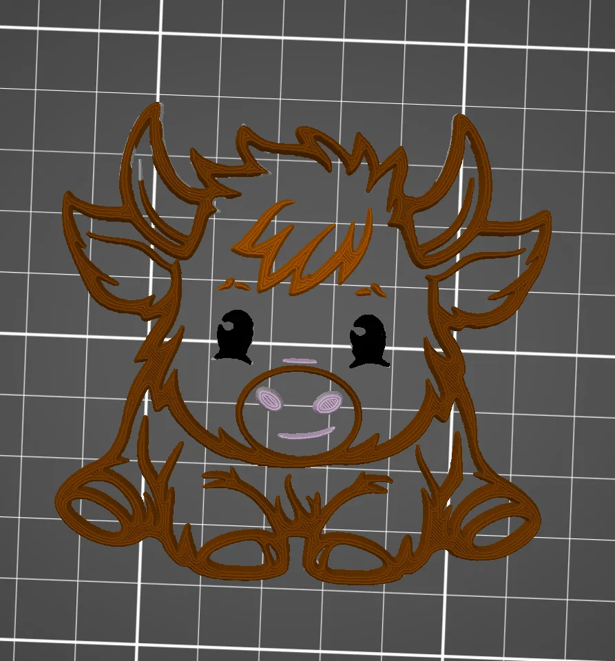 - In phần đế (base) rồi in từng mảnh của con bò riêng lẻ, sau đó dán (glue) các mảnh vào đế để treo tường. Phần đế có 2 lỗ ở mặt sau, rất hợp để đóng đinh hoặc dùng miếng dán tròn Command strips để gắn lên tường.