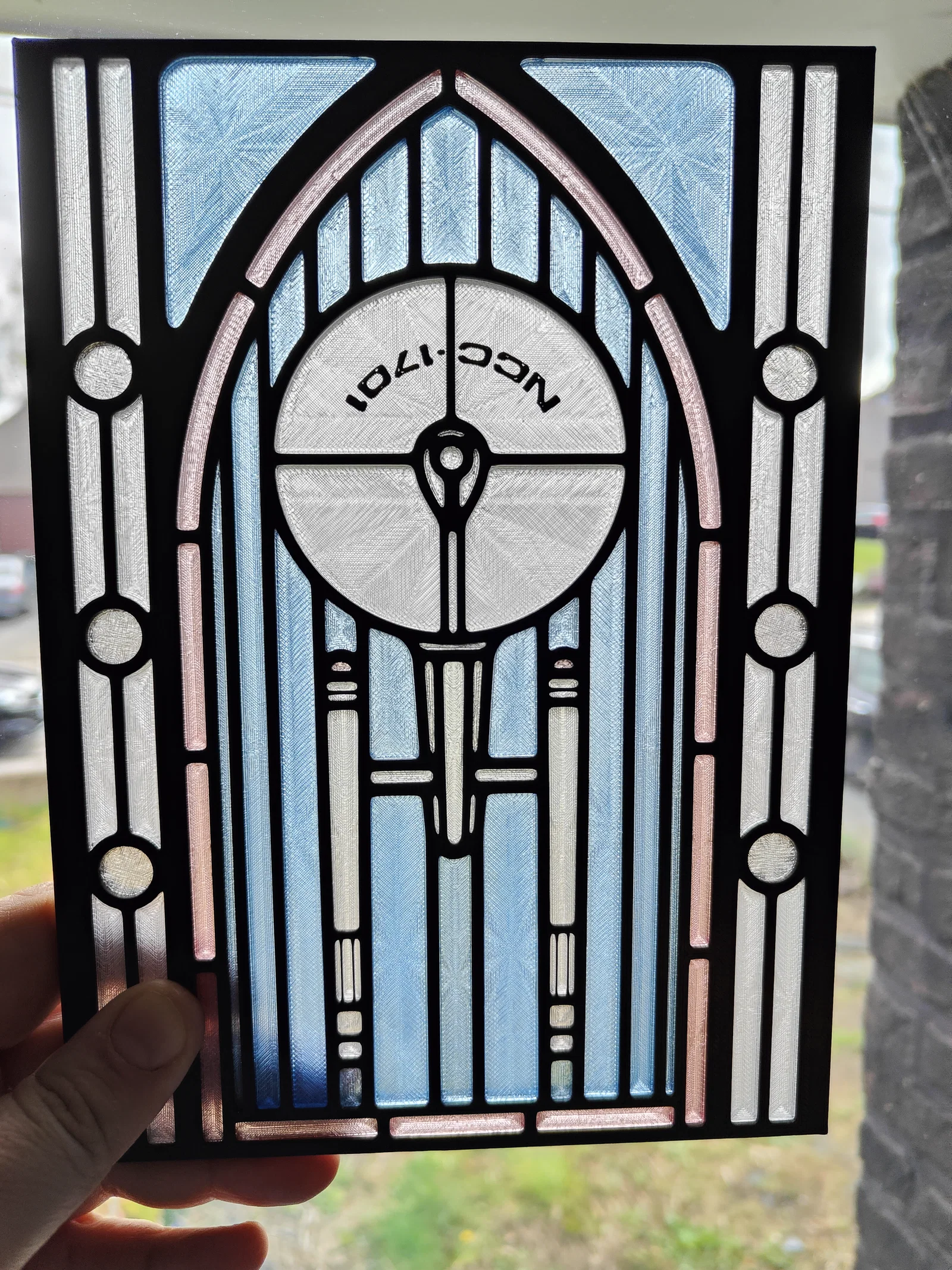 Các filament mình dùng đều là của Bambu Lab. Những phần trông như kính màu (stained glass) được in bằng Translucent PETG Light Blue, Pink, và Grey. Riêng các phần màu trắng được in bằng một loại PETG không thuộc dòng translucent filament. Những phần đó được in bằng Basic PETG Transparent. Phần mang số hiệu thân tàu (hull number) có chữ màu đen; việc này được làm bằng color change on layer sang filament Basic PETG Black.