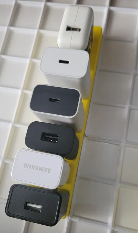 Bộ organizer sạc Gridfinity giúp bạn cất gọn nhiều loại charger khác nhau, miễn là vừa trong bề rộng 42mm của hệ Gridfinity.