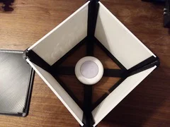 Hộp đèn lithophane đơn giản cho 4 hoặc 5 tấm hình. Lithophane khuyến nghị in 130×130×3mm. Bản remix có tuỳ chọn nắp trên dạng đặc và đế có phần tròn để gắn puck light.