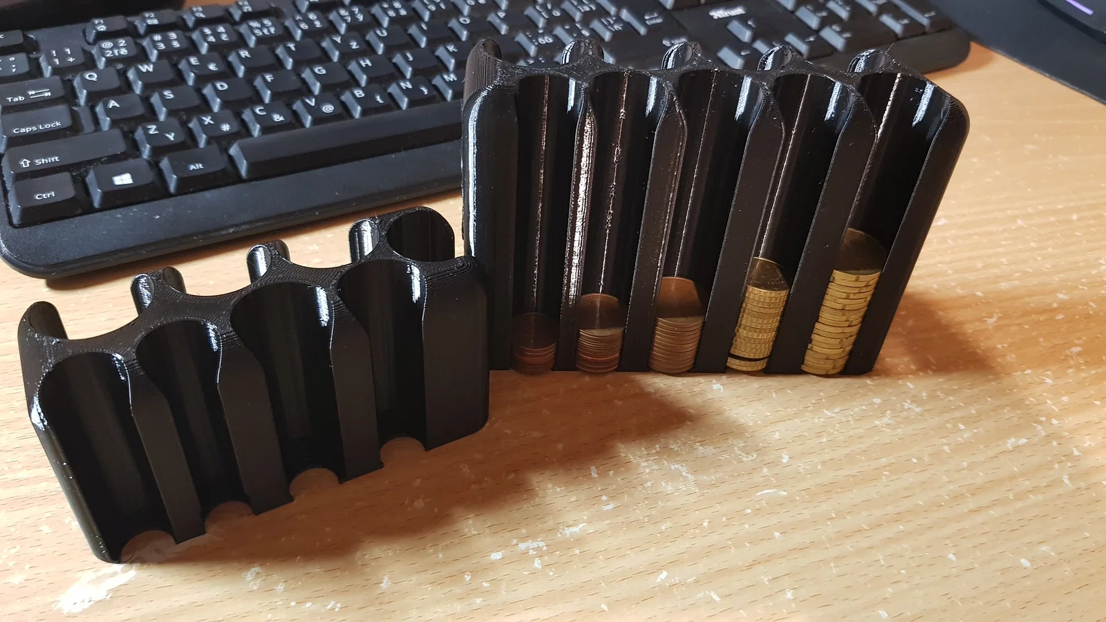 Bạn đang cảm thấy khó chịu vì những đồng xu lẻ cứ vương vãi khắp bàn làm việc hoặc trong túi xách? Với thiết kế in 3D thông minh này, việc quản lý tiền xu EURO trở nên vô cùng gọn gàng và ngăn nắp. Khay đựng này được thiết kế theo dạng các ống đứng riêng biệt, giúp bạn phân loại các mệnh giá tiền xu khác nhau một cách khoa học, từ đó dễ dàng lấy ra hoặc đếm nhanh số lượng khi cần thiết.