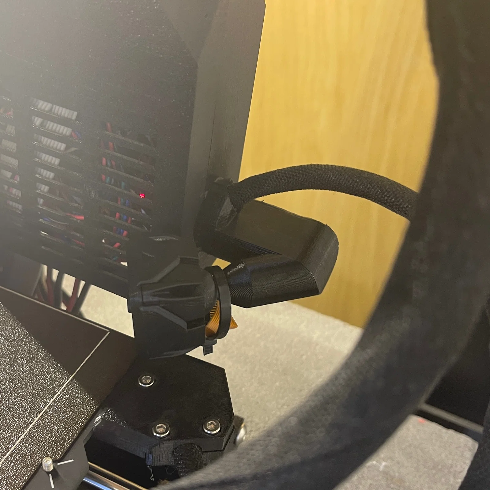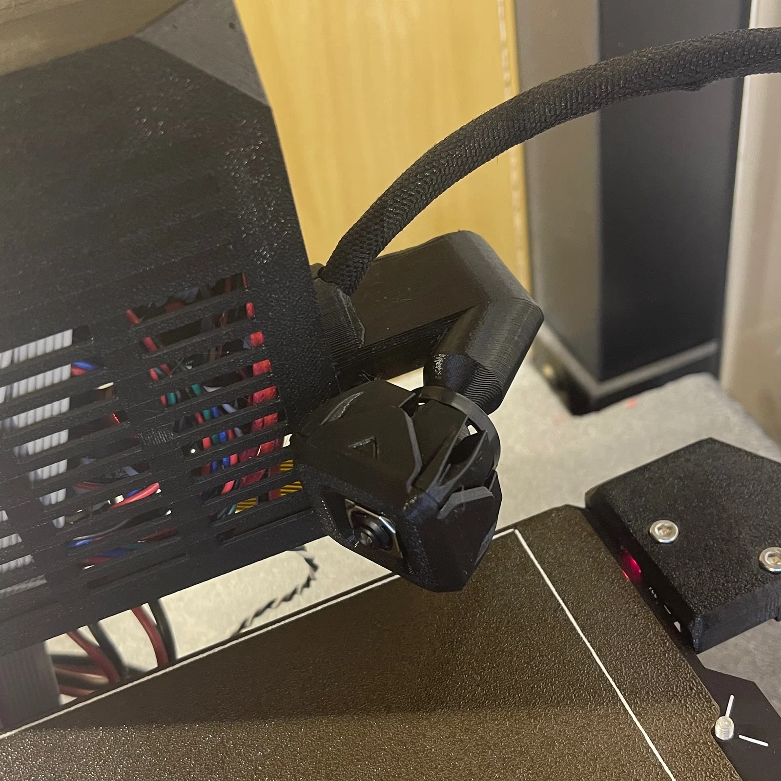 Cảnh báo! Có một người dùng báo bị va chạm giữa camera và cụm extruder. Vấn đề này sẽ xảy ra nếu bạn in các món lớn và chiếm khu vực phía sau/bên trái của máy. Dựa trên báo cáo này, mình khuyên bạn nên đặt camera tránh xa vùng in để khỏi gặp sự cố. Trường hợp của mình thì mình gắn camera sát vào phần enclosure.