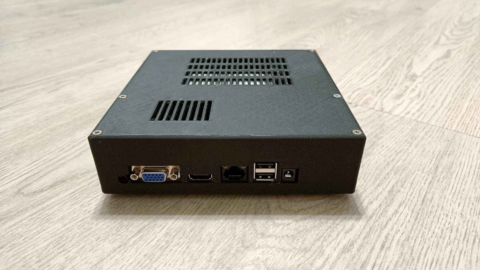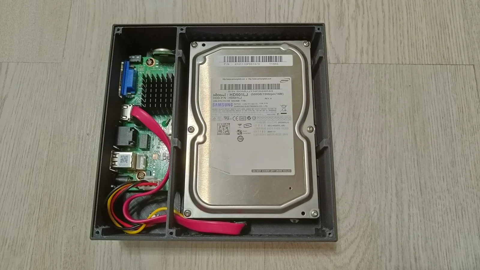Vỏ hộp cho board NVR (mua từ AliExpress), thiết kế vừa ổ cứng HDD 3.5. Chân đế có thể tận dụng từ case PC cũ hoặc tự in. Nắp bắt bằng vít tự khoan, dễ lắp ráp.