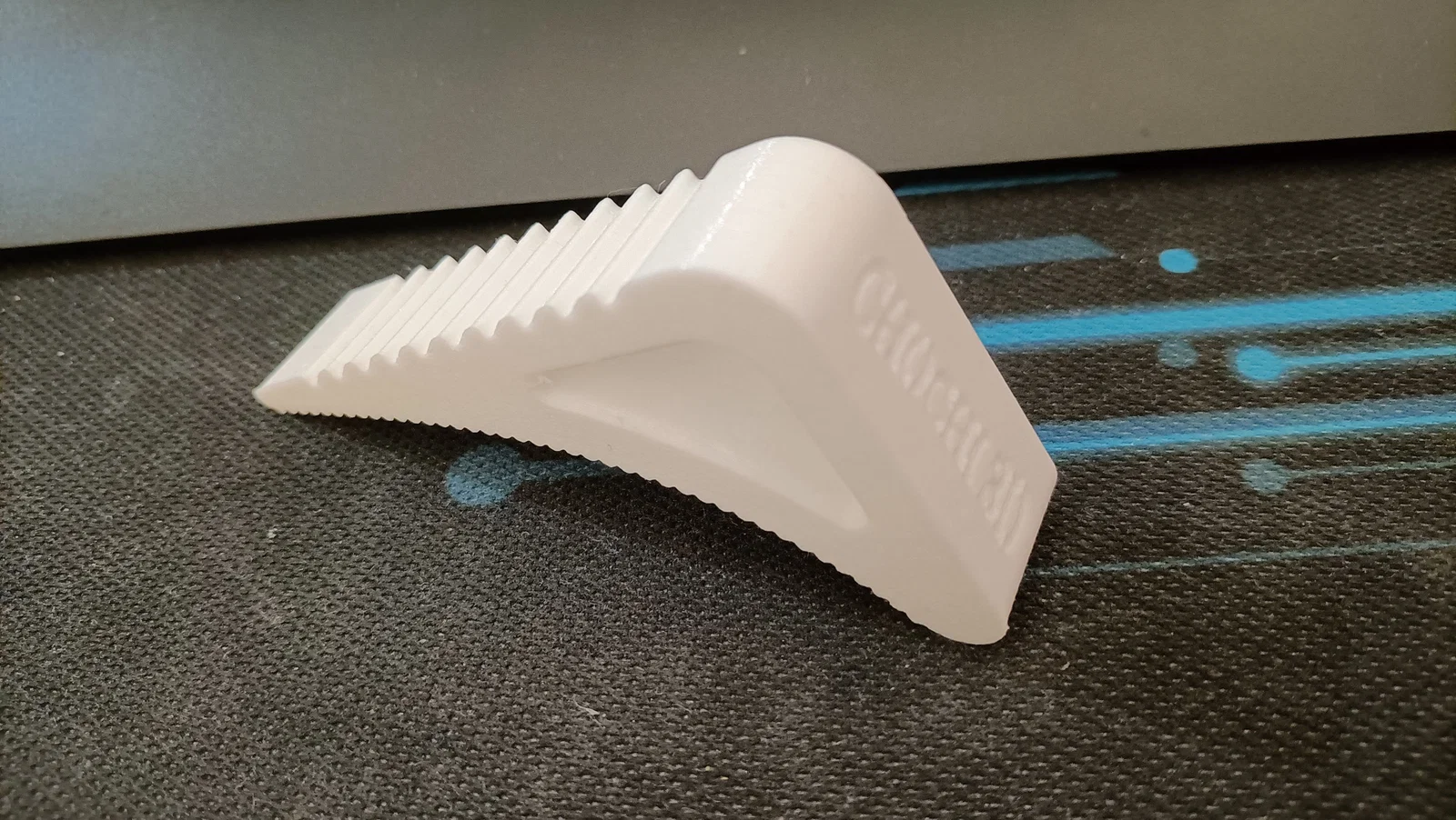 Mẫu Door Stopper nhỏ gọn để chặn cửa: đặt dưới cửa và khóa bằng các rãnh, có thể đạp chân để siết nhờ dạng tam giác ngược. In được với PLA nhưng tối ưu nhất là TPU/filament mềm. Có kèm TPU settings.