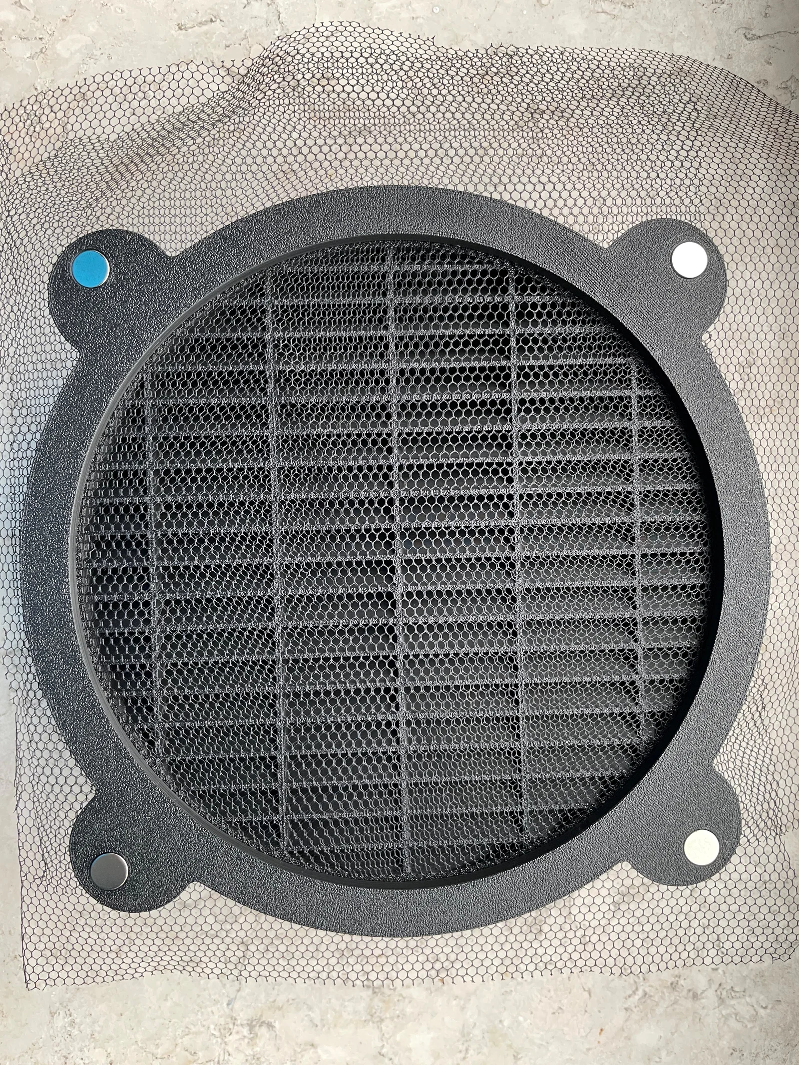 Air Buffer cho grow tent giúp cho khí vào nhưng hạn chế ánh sáng lọt vào. ĐK ngoài 160mm (phổ biến trên growtent), dễ scale X/Y. Version 2 cho phép kẹp Mosquito-Net chống côn trùng, dùng 8 nam châm Neodym 8x2mm.