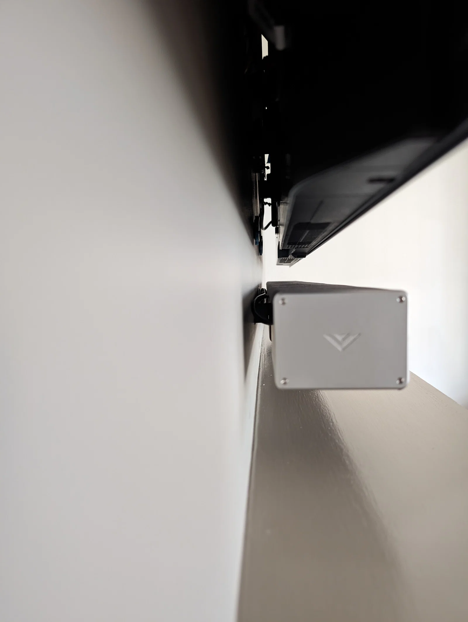 Bộ ngàm treo tường cải tiến cho Vizio soundbar, dựa trên mount của model SB36512. Lưng đặc giúp không lún/cấn vào tường thạch cao khi bắt vào stud, kèm tùy chọn nghiêng 5° để hạn chế soundbar bị xệ.