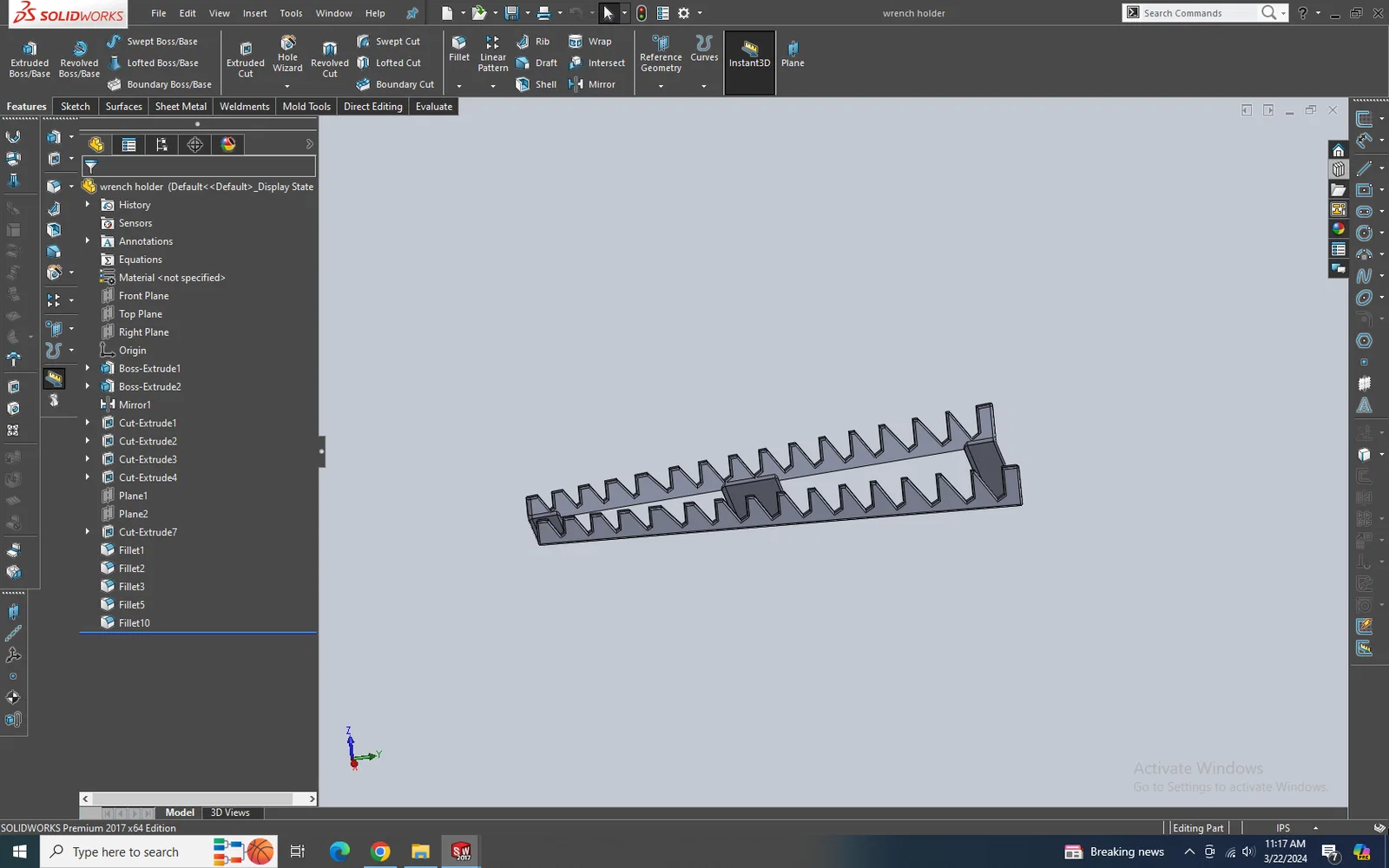 Mẫu khay sắp xếp cờ lê giúp bạn nhìn rõ kích cỡ/số trên từng cây để lấy nhanh và gọn gàng hơn. File cần tách bằng slicer cho bản trái và phải (mỗi bên 15). In PLA dùng tốt, đủ chắc.