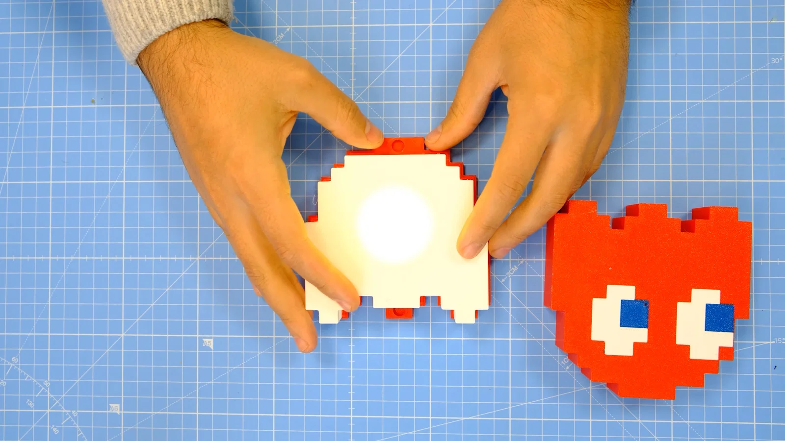 Bộ đèn PACMAN bấm được, siêu vui và hợp để trang trí phòng cho trẻ em (và cả người lớn). Bản chỉnh sửa để dùng đèn LED nút bấm không cần dây, kèm diffuser in filament trắng và cần nam châm 8x2mm.