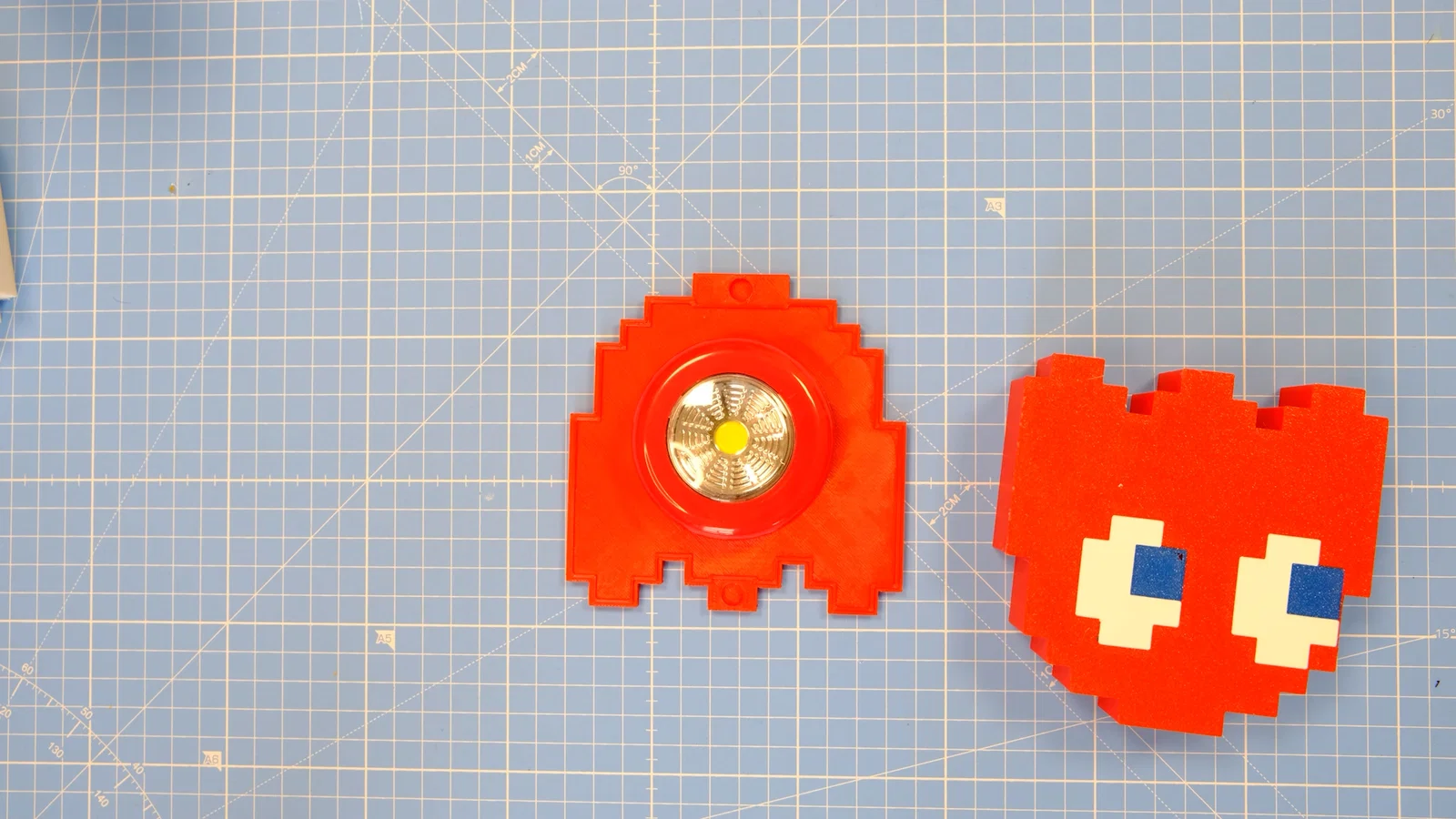 - Mình cũng đã làm thêm bản PacMan để PacMan có thể có “đèn” riêng, nhưng do mình sơ suất không tính tới việc loại đèn mình chọn không vừa, nên cần dùng một đèn nút bấm nhỏ hơn.