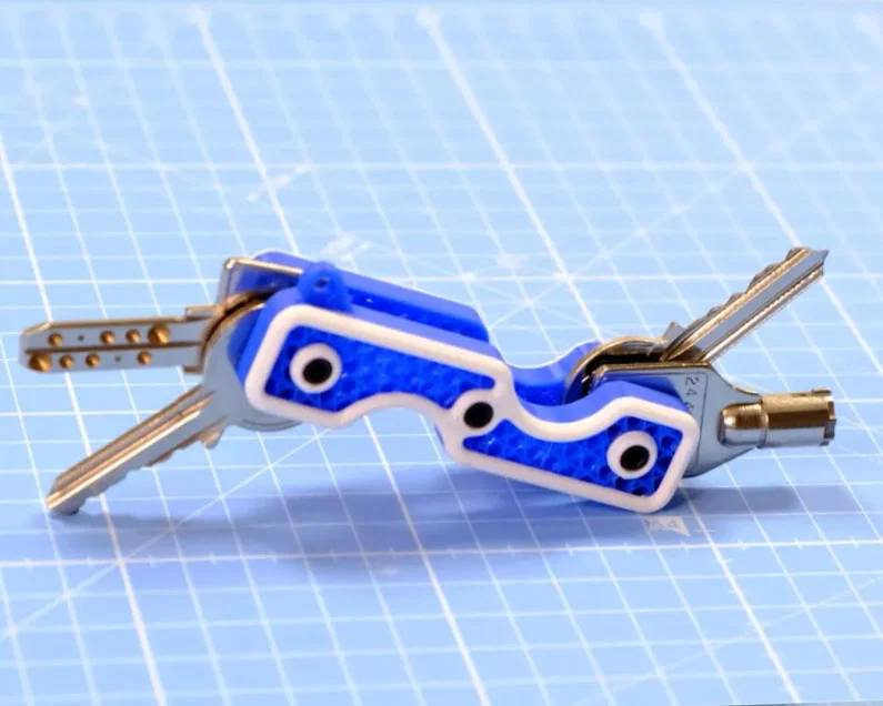 Móc khóa organizer kiểu “dao đa năng Thụy Sĩ” giúp gom chìa gọn gàng, dùng spacer và ren cấy M3. Bản remix có kích thước lớn hơn, viền vát chống cấn và có kèm file STEP cùng nhiều STL.