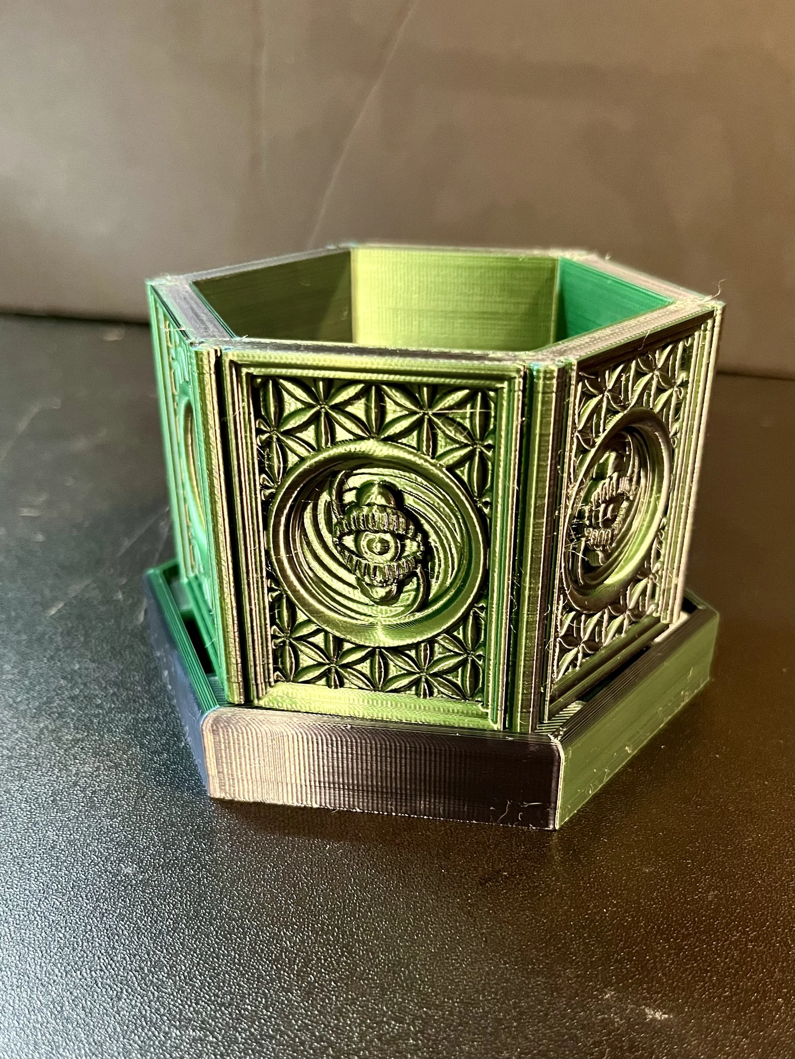 Mở “con mắt thứ ba” cho cây của bạn với chậu trồng kiểu psychedelic sacred geometry, kèm khay thoát nước. Model dễ scale to/nhỏ, không cần supports; khuyến nghị first layer 0.2mm và layer height 0.14mm.