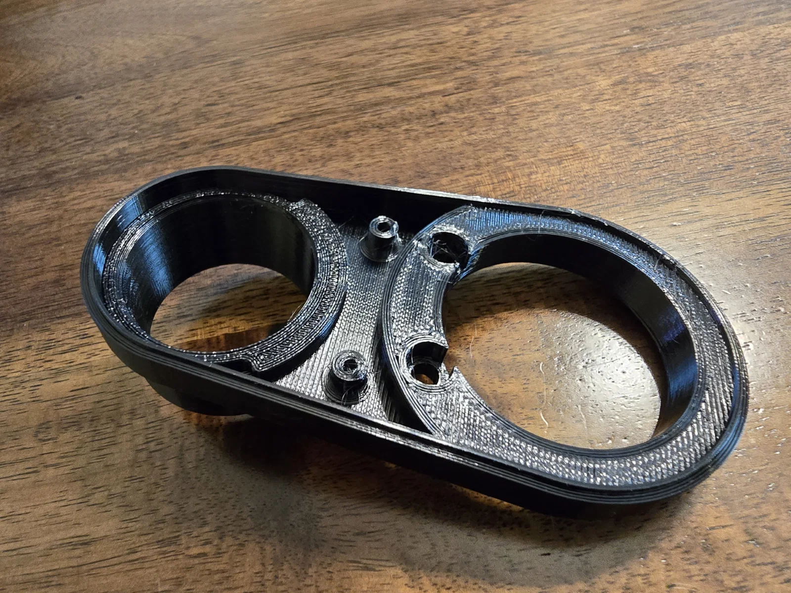Mình không muốn tự thiết kế từ đầu, dù nhìn tình hình thì có khi cũng phải vậy. Nhưng vì mình đã có sẵn cái shoe 52mm rồi nên một buổi chiều mình ngồi redesign cái phần cần thiết để vừa 55mm và gắn khớp với Genmitsu shoe. Nó gắn được và chạy ổn, nhưng sẽ hơi khít. Cũng không lạ vì mình đâu có 3D scanner gì, chỉ dùng thước kẹp (calipers) và làm đi làm lại để chỉnh cho ra. Mình thiết kế sao cho có thể dùng lại y chang mấy con vít và nam châm từ phần top nguyên bản qua phần mới này, nhưng bạn hoàn toàn có thể sửa file STEP để chuyển sang kiểu press-in cho gọn. Mình cũng làm thêm cái hose insert để vừa cái elbow của mình, đường kính trong (interior diameter) là 32mm. Đây là 2 món tách rời, bấm (snap) vào nhau khá chắc, nhưng chấm một ít keo CA thì cũng tiện. Mình tách ra như vậy để sau này muốn adapt cho nhiều cỡ ống khác nhau cũng dễ, và để lúc in không cần support.