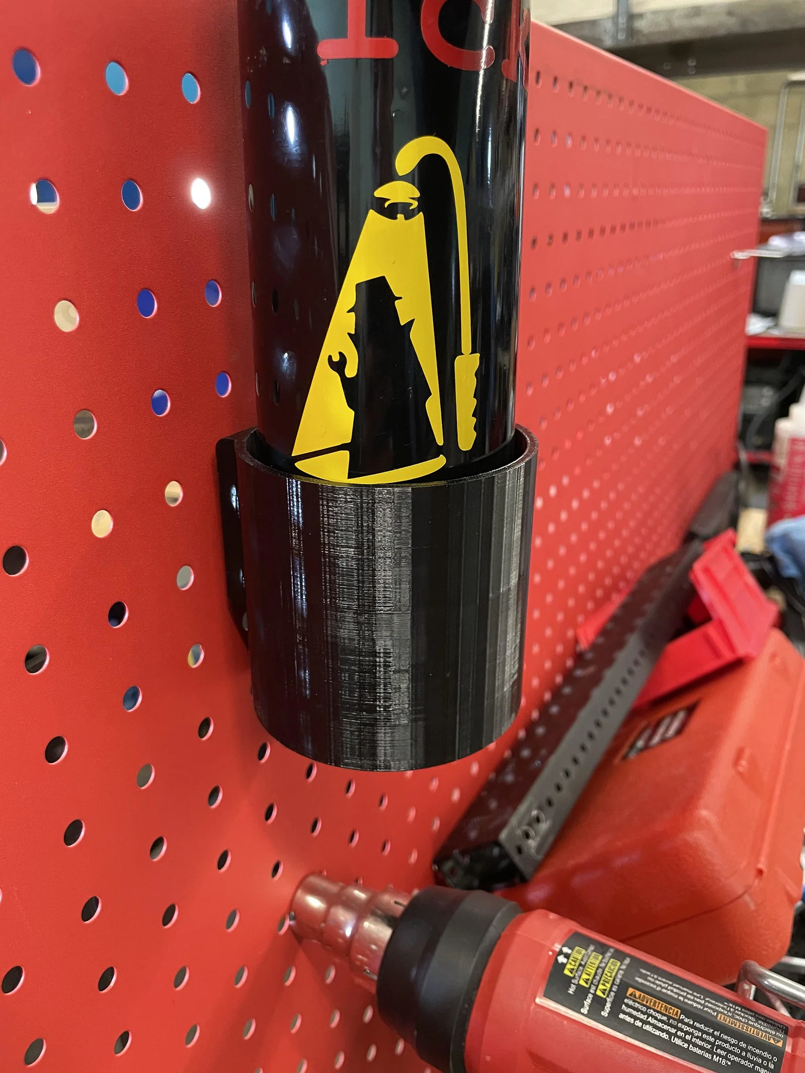 Pegboard Cupholder là giá đỡ lon gắn Pegboard, ôm vừa lon Red Bull và lon soda 12oz. Thiết kế có lỗ trong để giữ chắc; khuyến nghị infill ≥20% và dùng support cho phần peg vì khá dễ gãy.