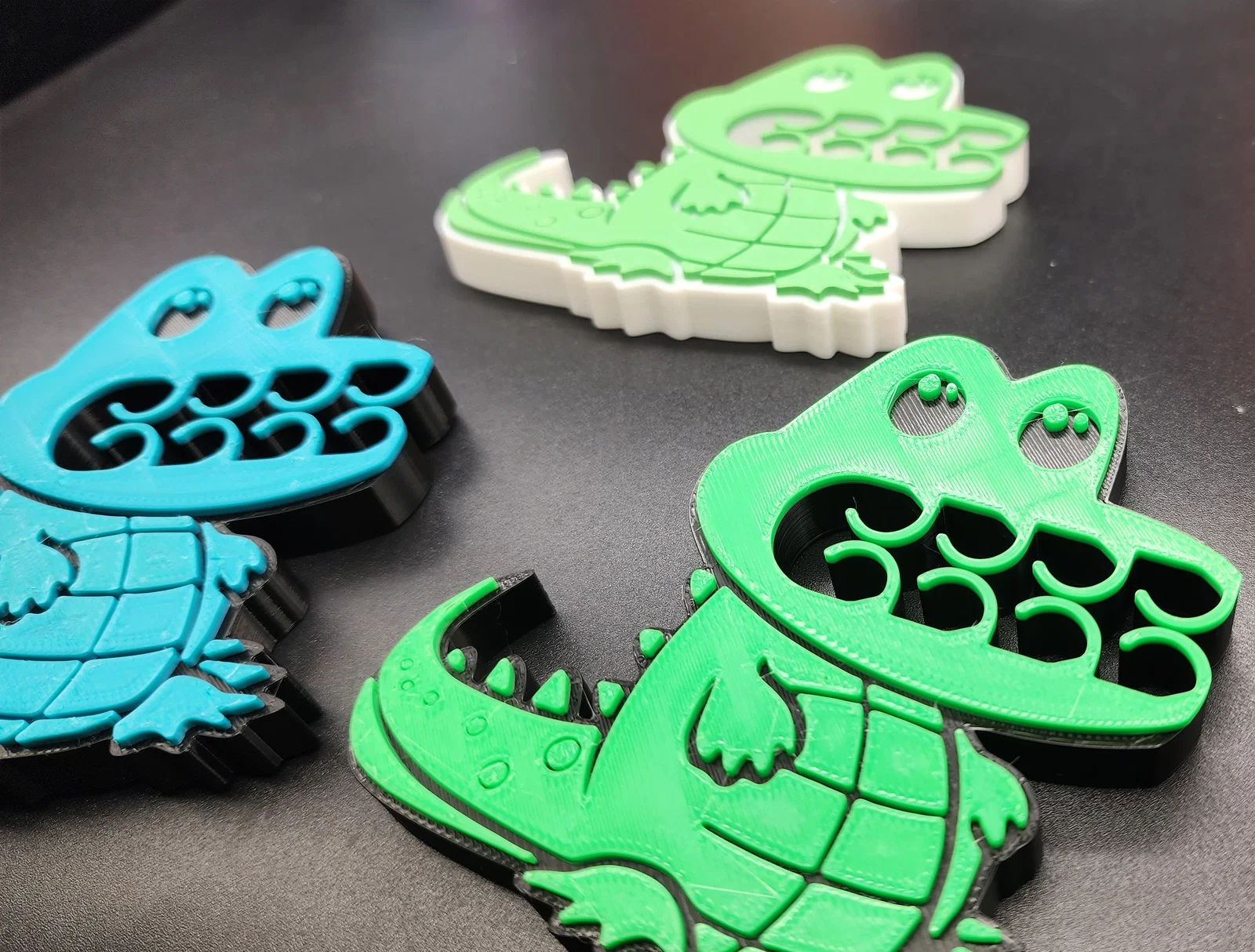 - Tùy chỉnh màu sắc dễ dàng: Bạn có thể in một màu duy nhất hoặc đổi màu nhựa (filament) ở độ cao 8.6mm để làm nổi bật các chi tiết mắt hoặc miệng chú cá sấu, tạo nên ngoại hình sinh động hơn.