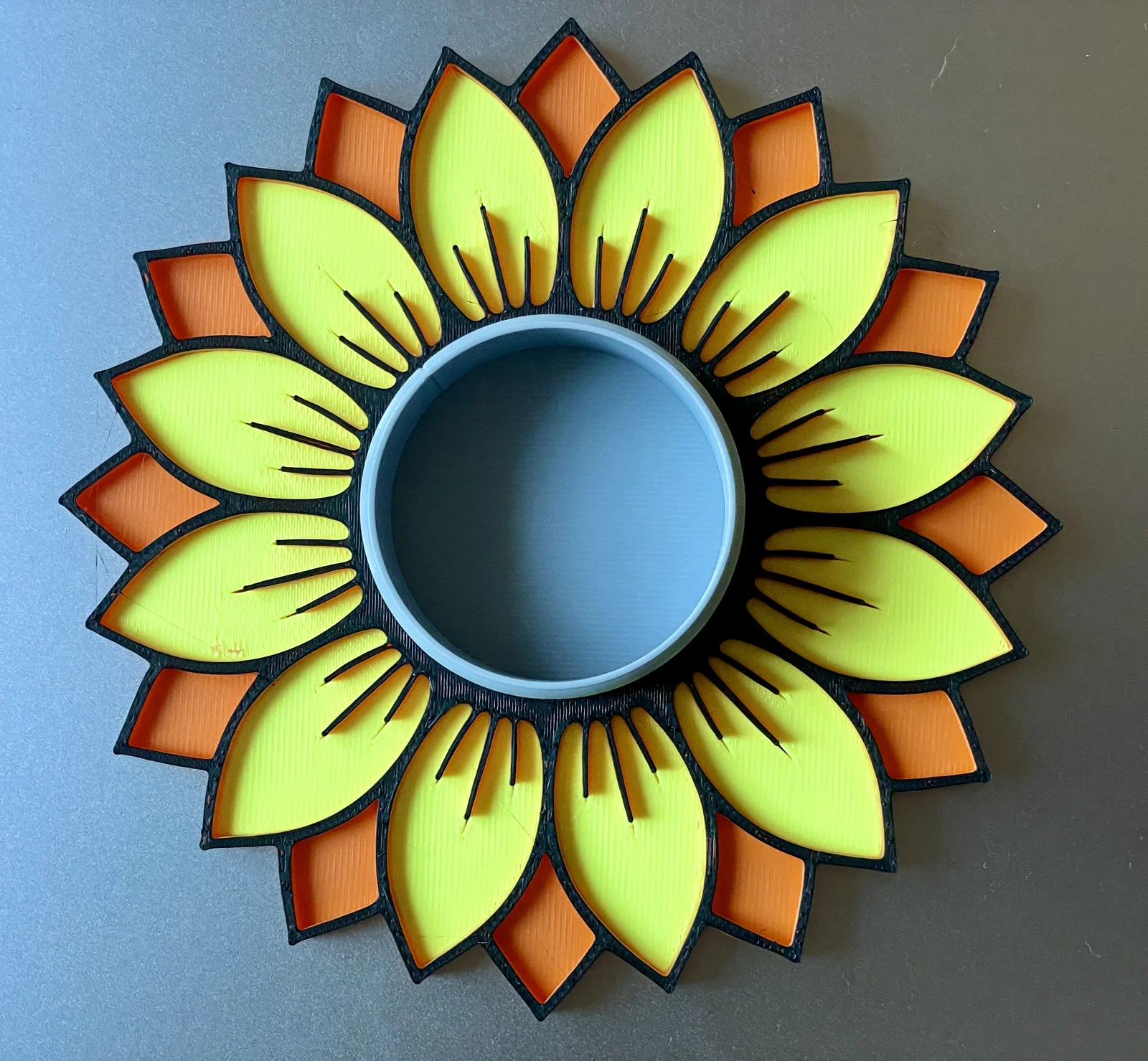 Sản phẩm này được tối ưu hóa cho công nghệ in 3D, cho phép bạn sáng tạo với nhiều tông màu khác nhau. Như trong hình minh họa, việc sử dụng các dải màu rực rỡ như vàng, cam và đen tạo nên sự tương phản mạnh mẽ, mang lại cảm giác năng động và tràn đầy sức sống. Bạn hoàn toàn có thể tùy chỉnh màu sắc theo gu thẩm mỹ cá nhân hoặc phối màu để phù hợp với nội thất hiện có trong căn phòng của mình. Đây là một món quà thủ công vô cùng ý nghĩa dành tặng bạn bè hoặc người thân trong những dịp đặc biệt.