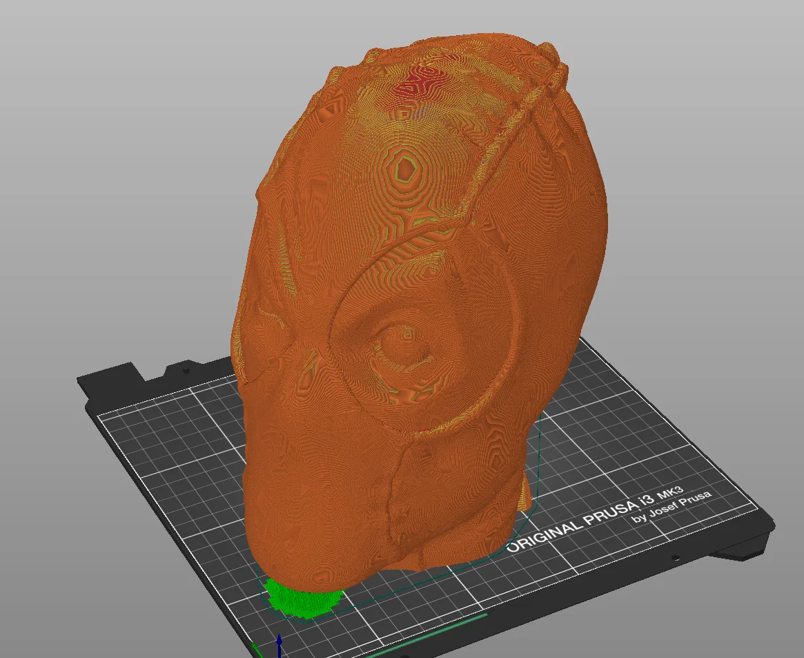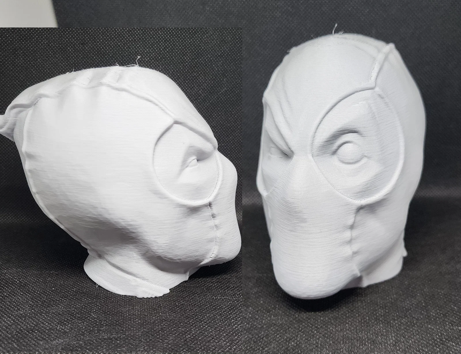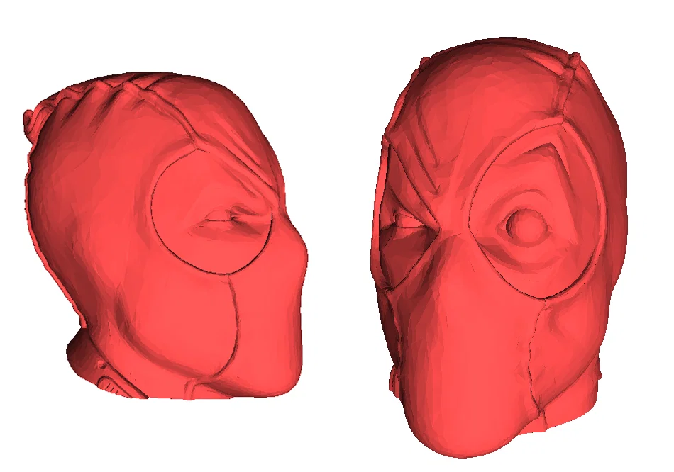 Mô hình đầu Deadpool kích thước gần như đầu người, dựa trên tác phẩm điêu khắc cực chất của Eastman. Bản này đã được trim và scale lại cho đúng tỉ lệ để in 3D trưng bày.