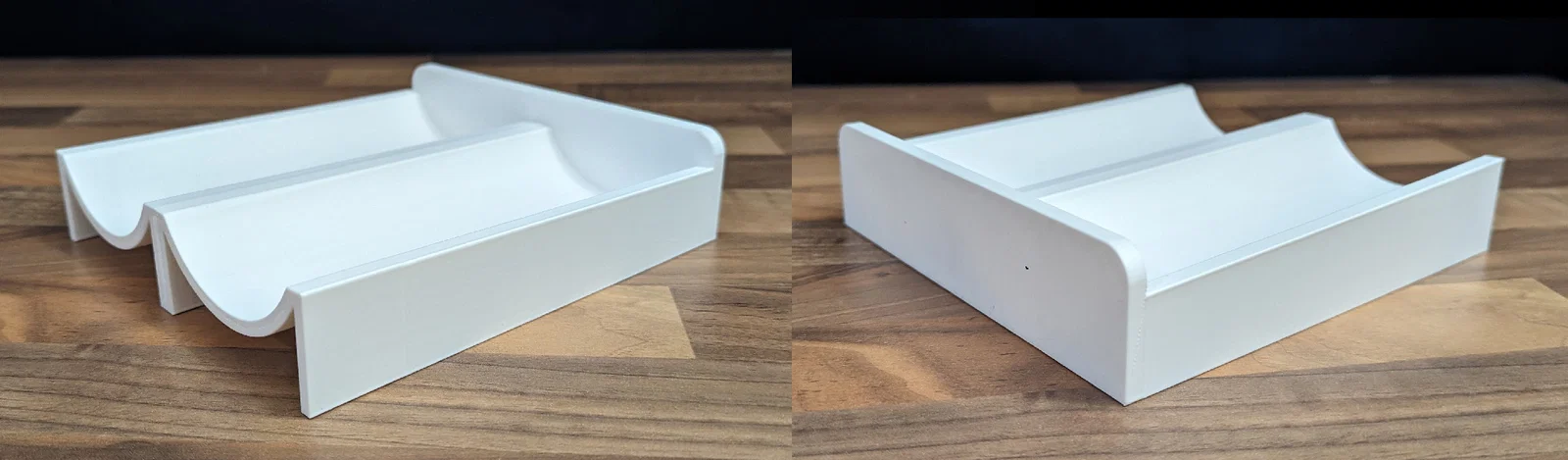 Giá để chai rượu cho kệ tủ lạnh, giữ được 2 chai. Thiết kế để phần đầu chai hơi nâng lên nhằm giảm nguy cơ rò rỉ, hạn chế tràn trong tủ lạnh nếu nắp bị xì.