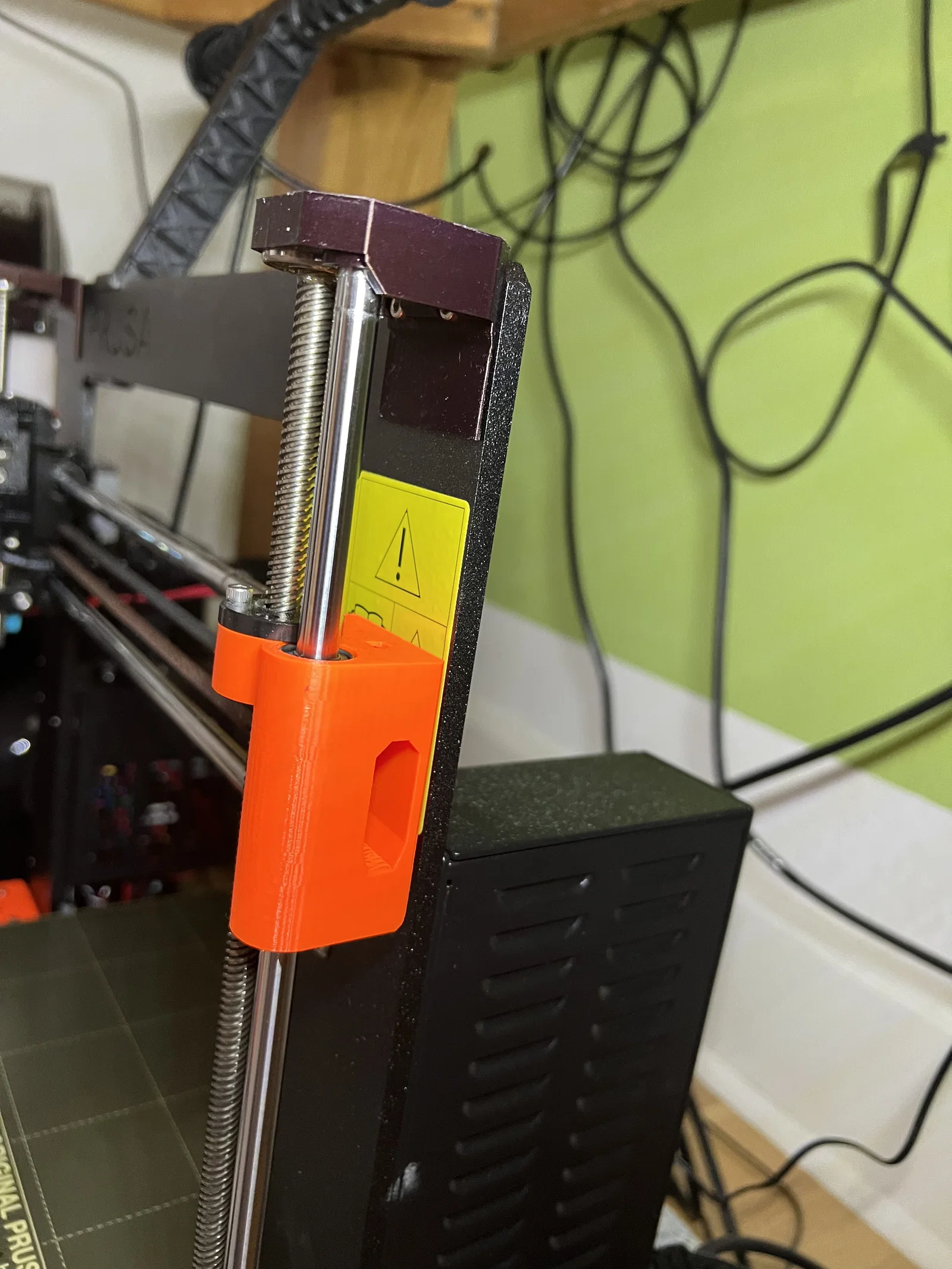 Bản nâng cấp mod bearing cho trục Z Prusa MK3/S: “neck” dài hơn và thân cứng hơn giúp tăng tiếp xúc, giảm rung/ghosting và tiếng ồn rõ rệt. Dùng 608 ball bearing, khuyến nghị in ABS/ASA, 100% infill.