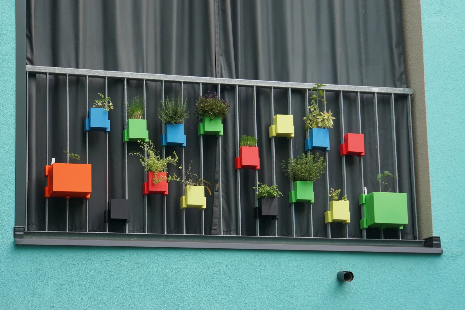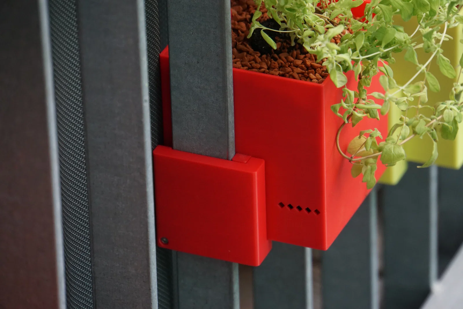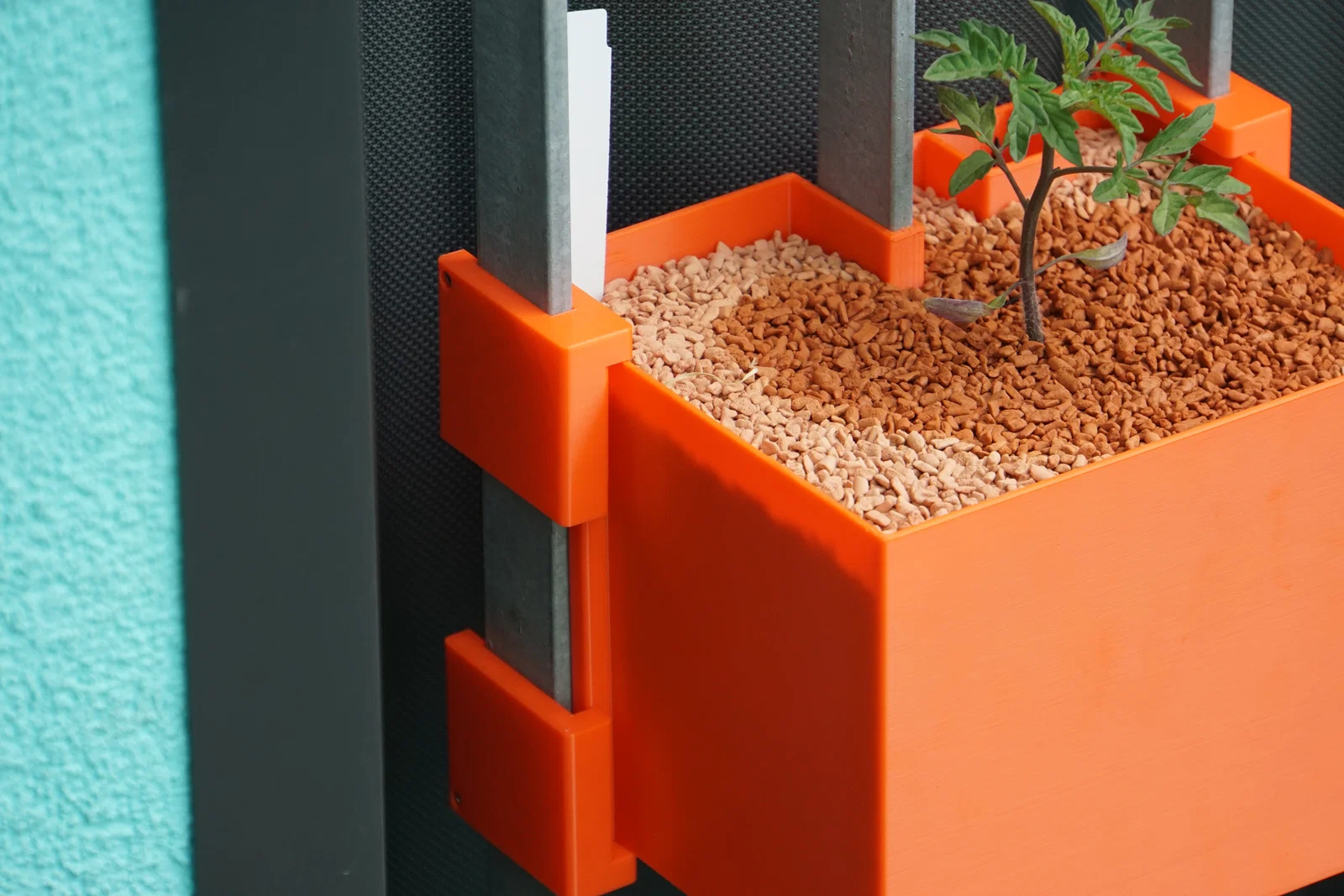 Chậu/khay trồng cây thiết kế để vừa khít vào khoảng giữa các thanh của lan can ban công. Có kèm file OpenSCAD để bạn chỉnh cho đúng lan can nhà mình một cách dễ dàng!