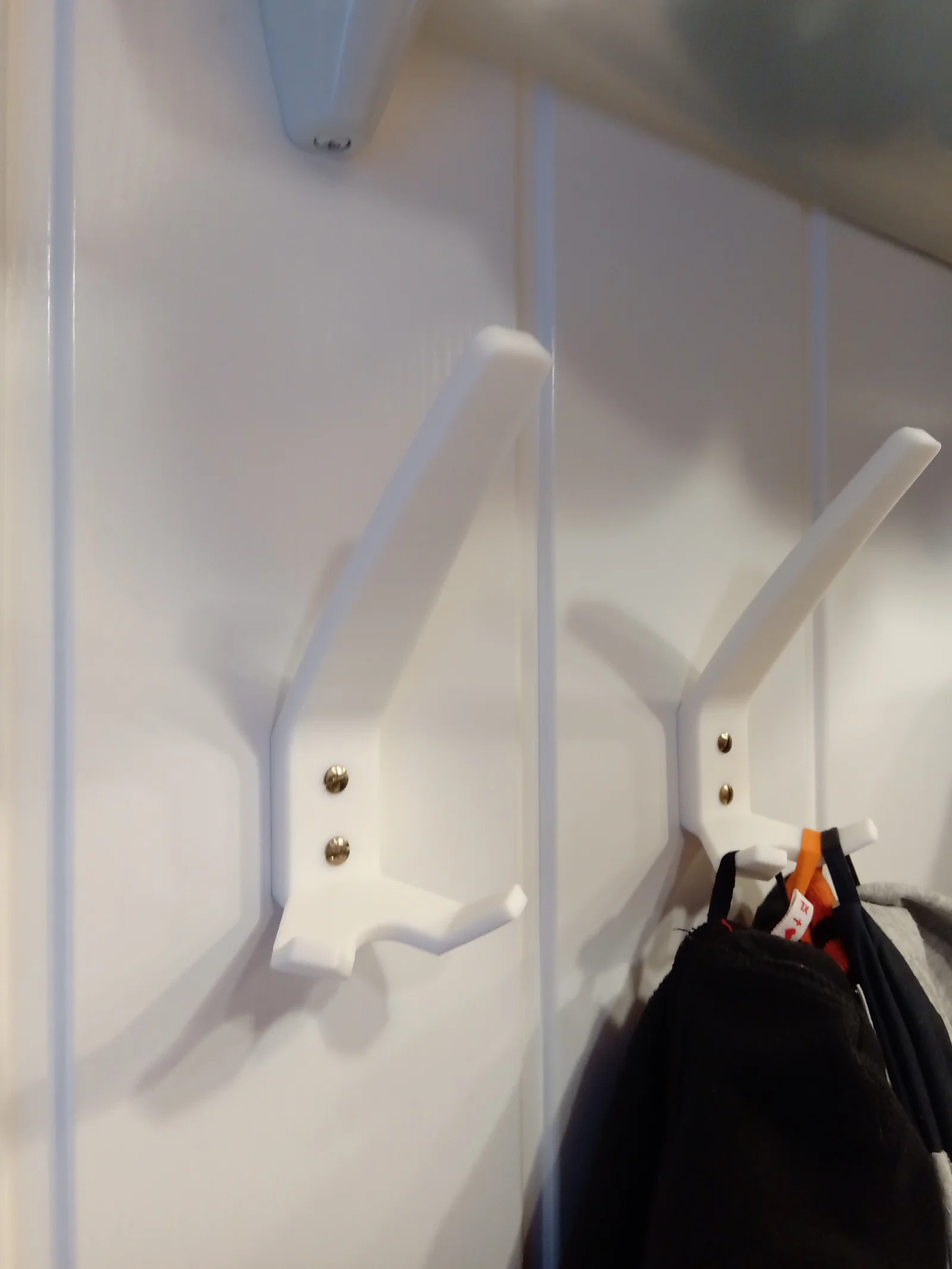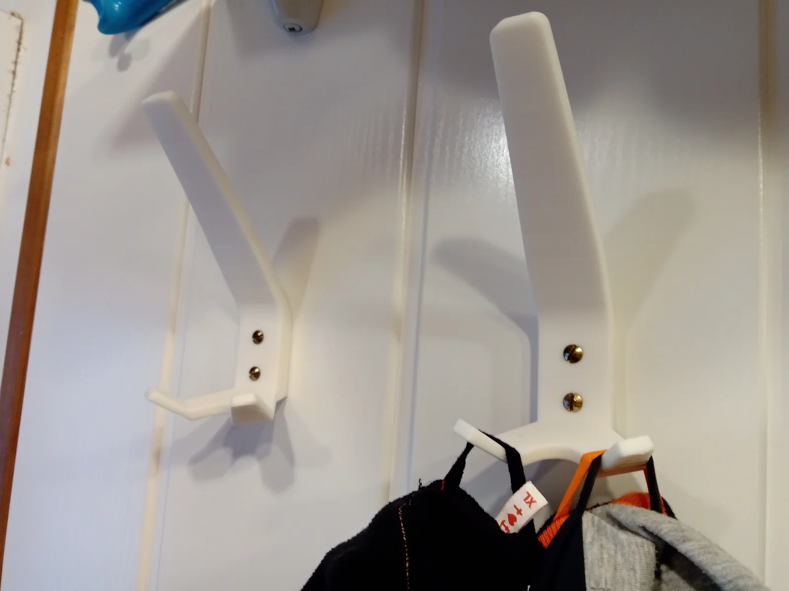Nhà mình có vài cái móc / coat hanger cùng một kiểu – một móc lớn ở phía trên, và hai móc nhỏ phía dưới. Hai cái trong số đó thì mấy năm trước móc lớn ở giữa đã bị gãy, và tuần này có một cái gãy hẳn luôn vì rớt mất cả hai móc dưới. Vì mình không phải người lắp, với lại nhìn cũng khá cũ, nên mình thử thay bằng mẫu này. Một tấm hình có chụp mẫu mình làm để so sánh với các móc đang lắp sẵn trong nhà.