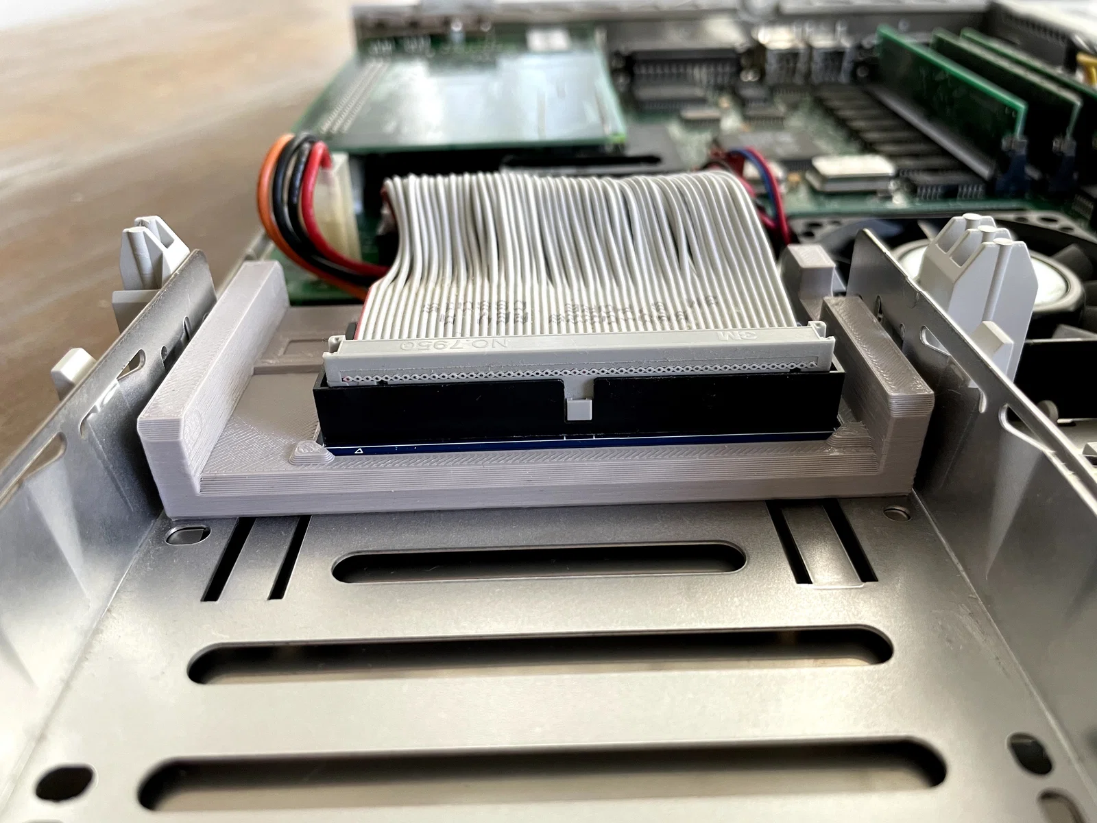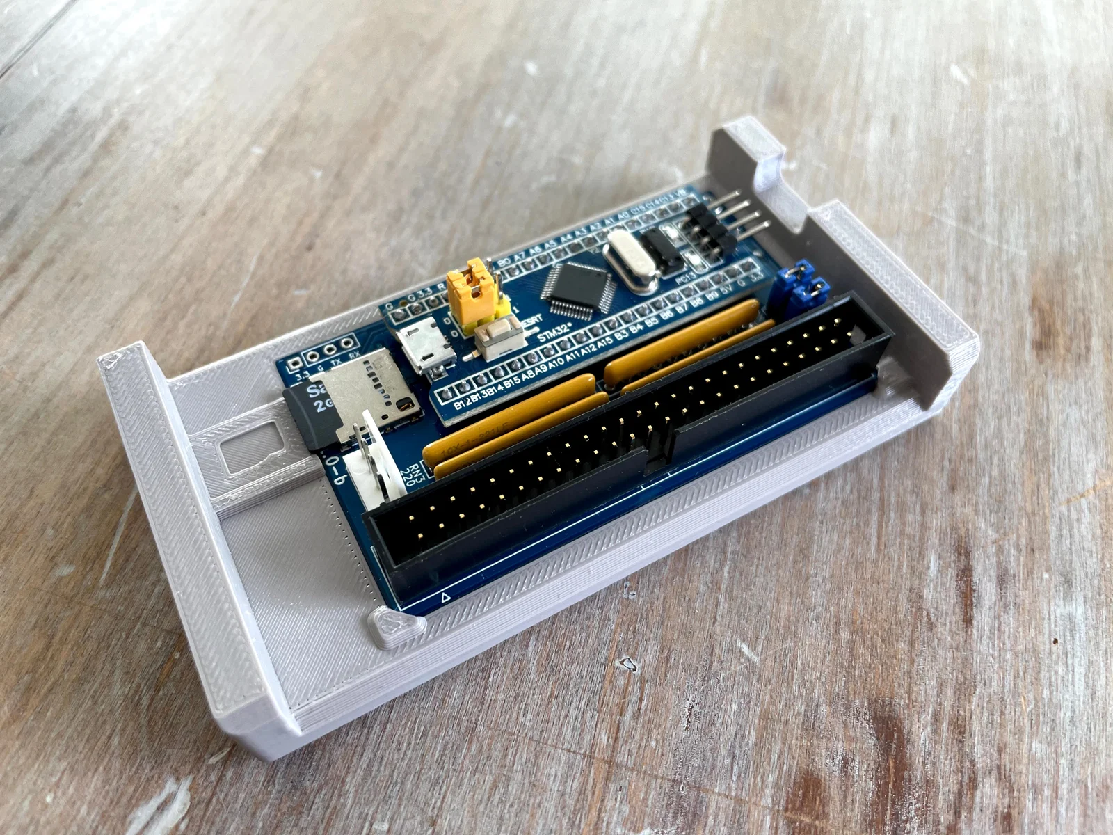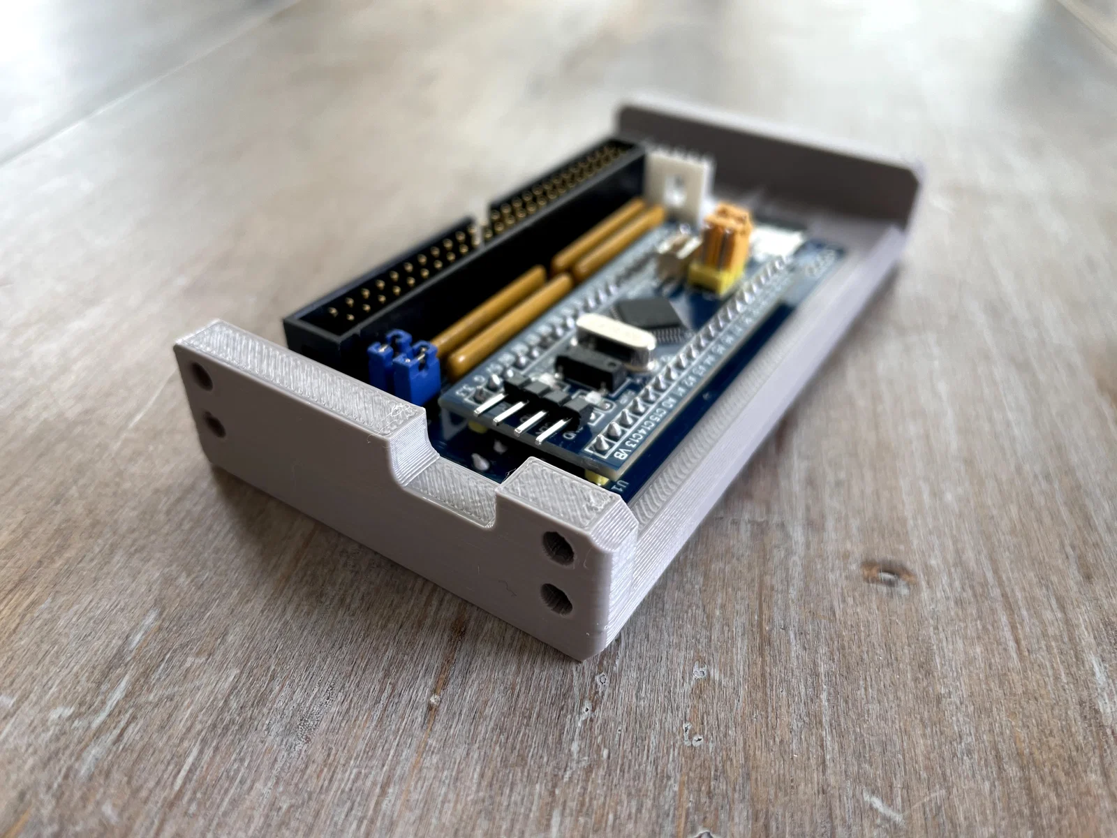 Khung in 3D giúp lắp đặt BlueSCSI vào khoang ổ cứng 3.5" trên các dòng Macintosh cổ. Thiết kế chắc chắn, dễ lắp ráp và hỗ trợ các khoảng cách lỗ 45mm hoặc 60mm cho nhiều dòng máy khác nhau.