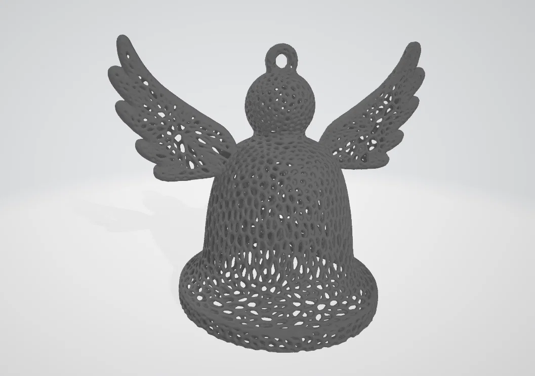 Voronoi Bell Angel là ornament hình thiên thần cánh xòe với thân chuông họa tiết Voronoi, cho ánh sáng xuyên qua và đổ bóng đẹp. Có vòng treo phía trên, phù hợp trang trí Noel hoặc trưng bày quanh năm.