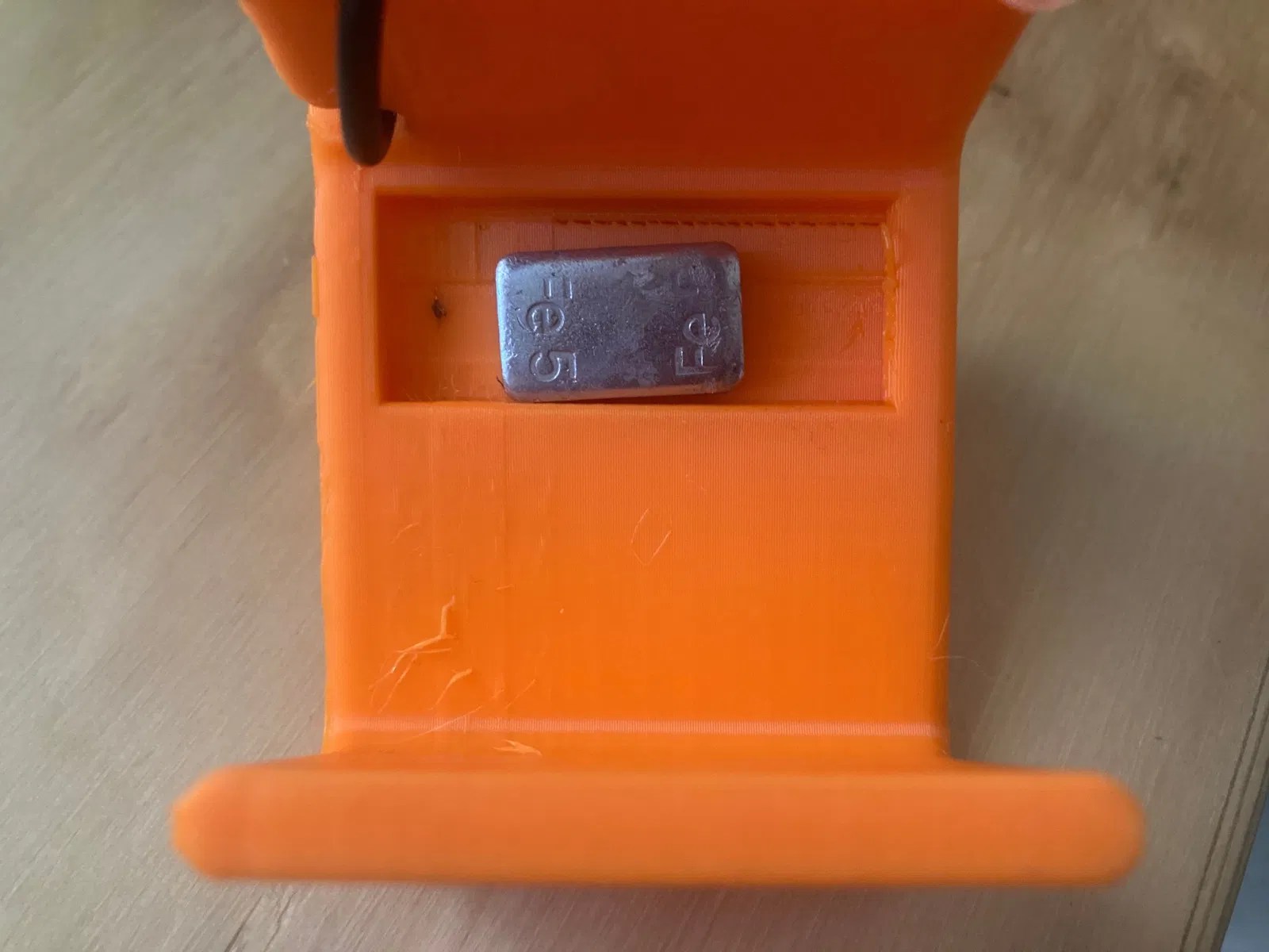 Mặt dưới của dock có một ngăn hình chữ nhật lõm xuống. Đây là để dán một vài viên trọng lượng dính để cung cấp thêm một chút trọng lượng nếu bạn muốn. Ngăn này đủ lớn cho hai viên nặng 5g.