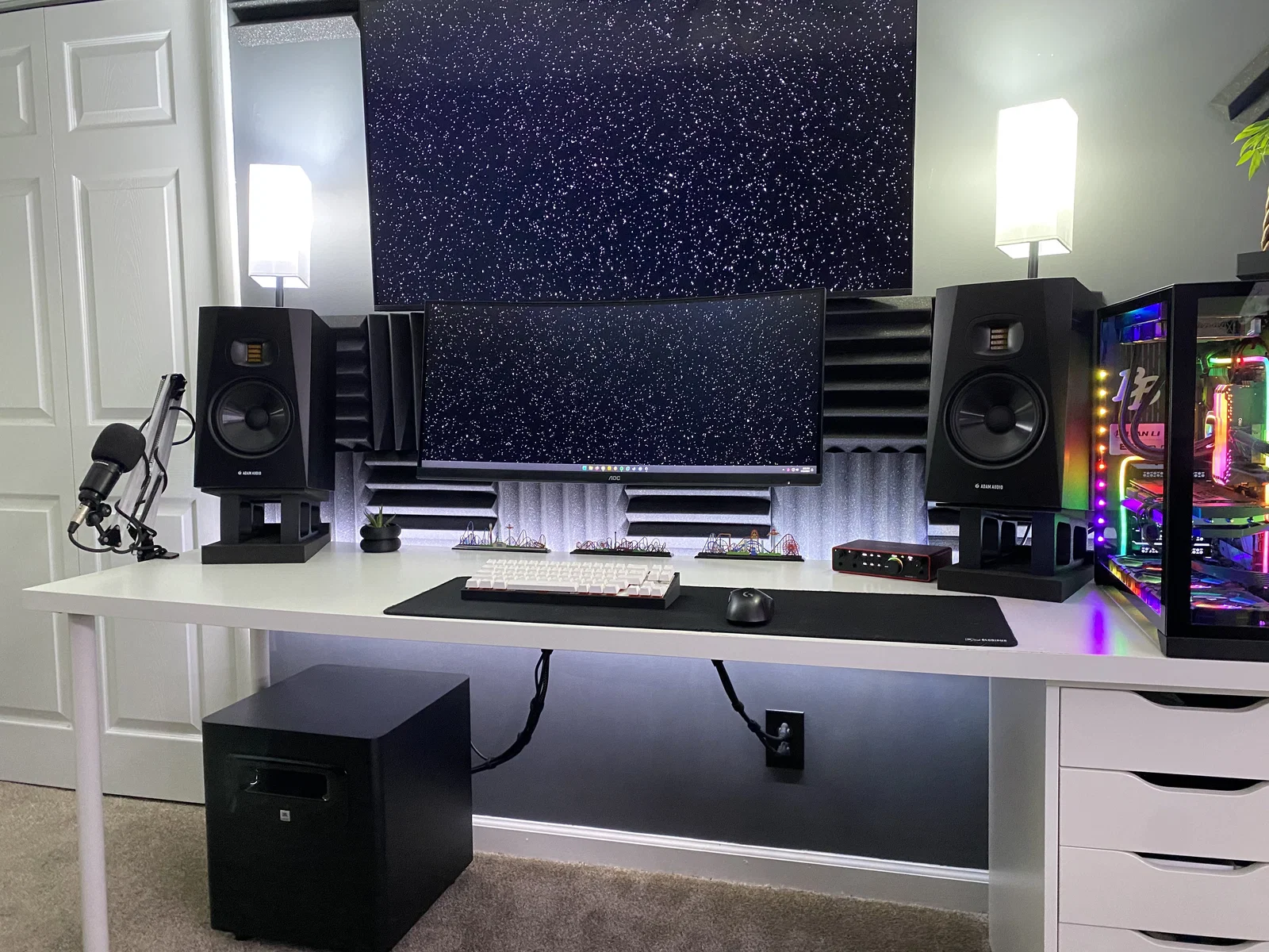 Mình đang dùng Adam Audio T7V. Nếu bạn dùng loa driver 5 inch thì có thể scale tất cả các part xuống khoảng 75% để ra kiểu dáng tương tự.