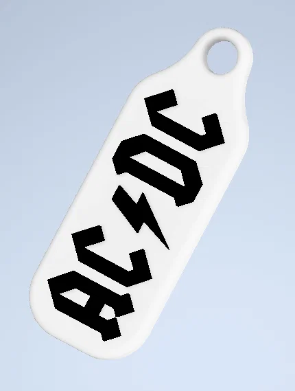 Mẫu móc khóa AC-DC do chính mình thiết kế. File phù hợp để in 3D làm keychain đơn giản, nét rõ. Khuyến nghị in với nozzle 0.4mm, layer height 0.16mm và có thể đổi màu filament ngay trong lúc in.