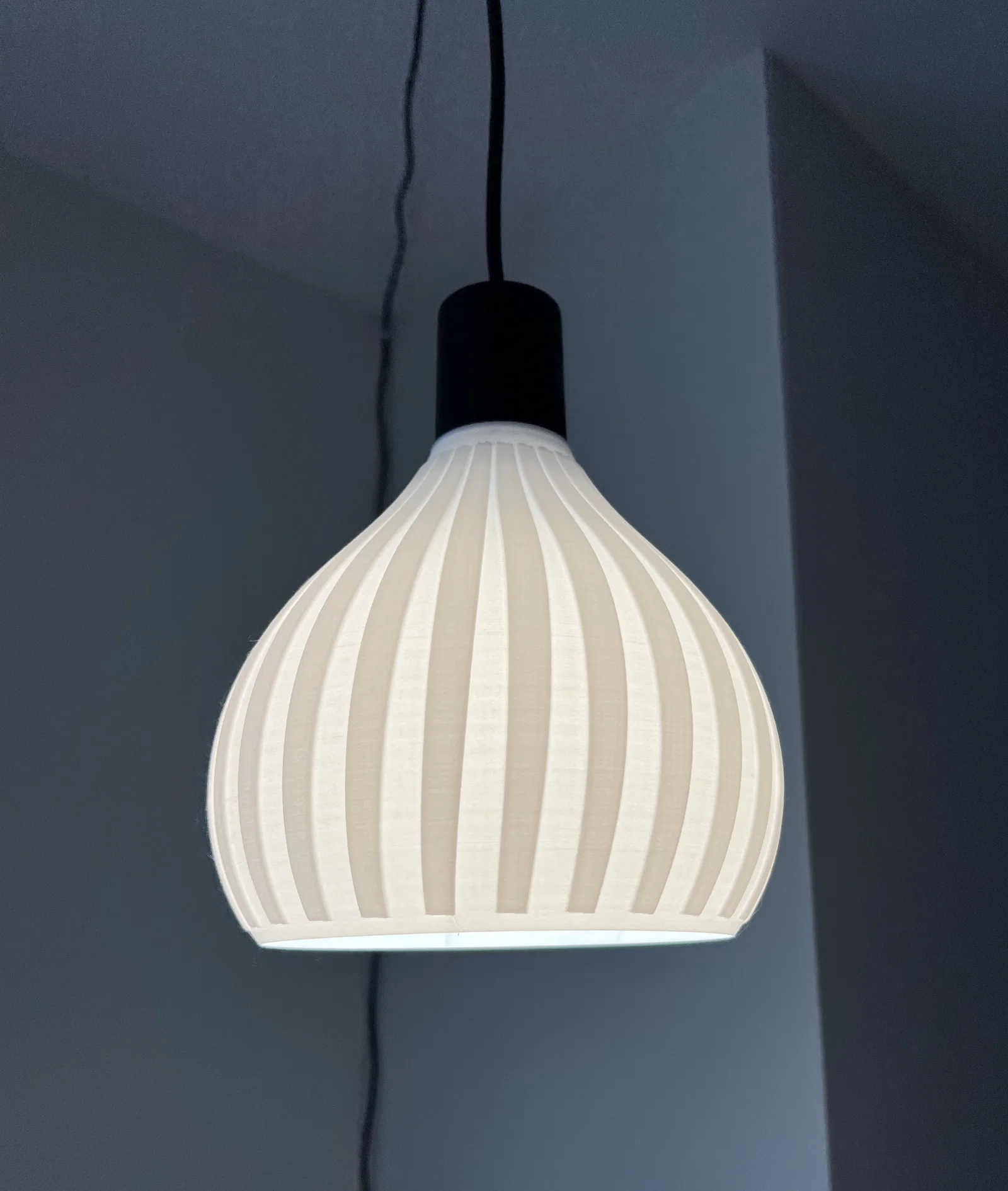 Chụp đèn treo in PETG dạng pendant, vừa khít với bộ dây IKEA HAVSRIS có công tắc. Gợi ý dùng Fuzzy Skin để bề mặt giống hàng hoàn thiện và che layer lines. In úp ngược, không cần supports.