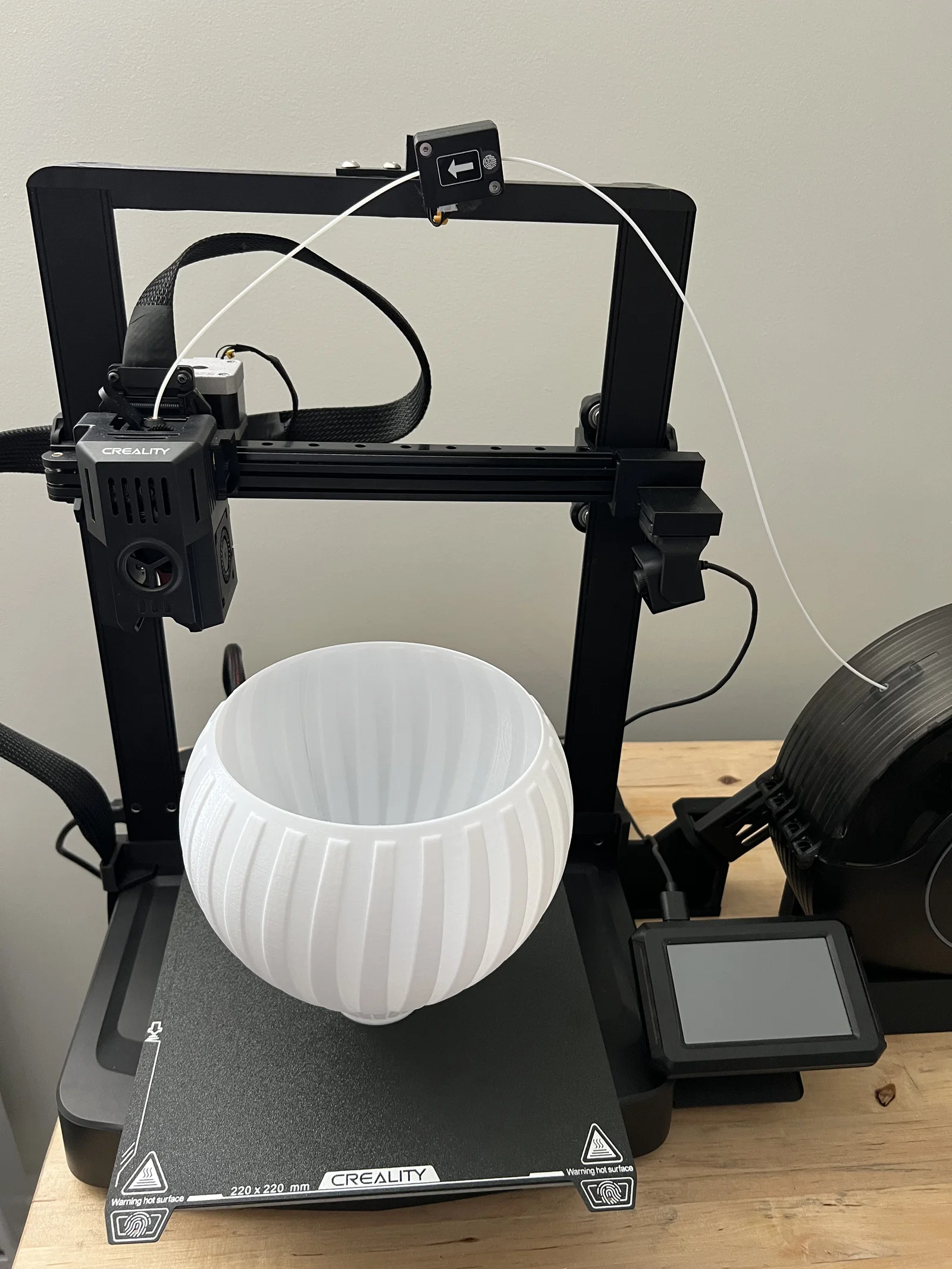 - Supports: Không, in chụp đèn theo hướng úp ngược (PETG bám bed rất tốt)