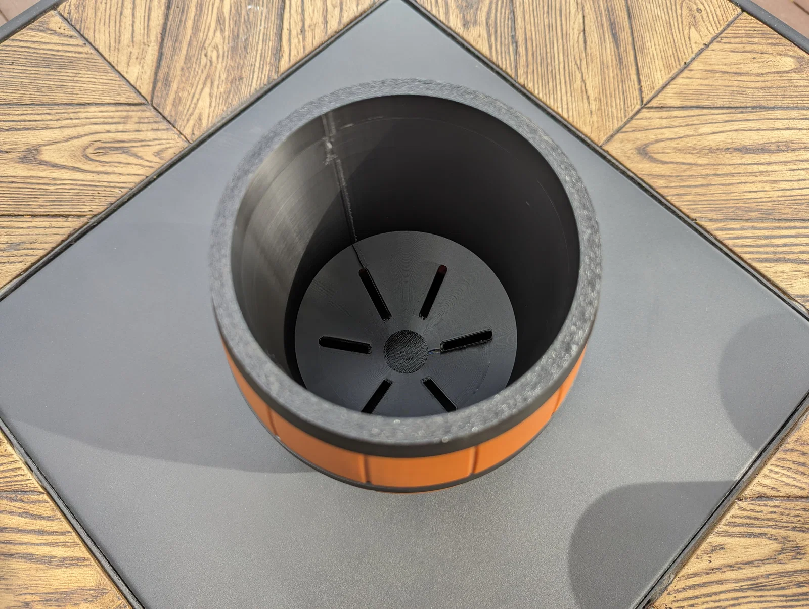 Nếu dùng kiểu tự tưới, nhớ giữ mực nước thấp hơn vòng “kim loại” (metal band) đầu tiên để chỉ có vật liệu thấm nước chạm vào nước. Thùng kín nước và sẽ không bị rò rỉ.