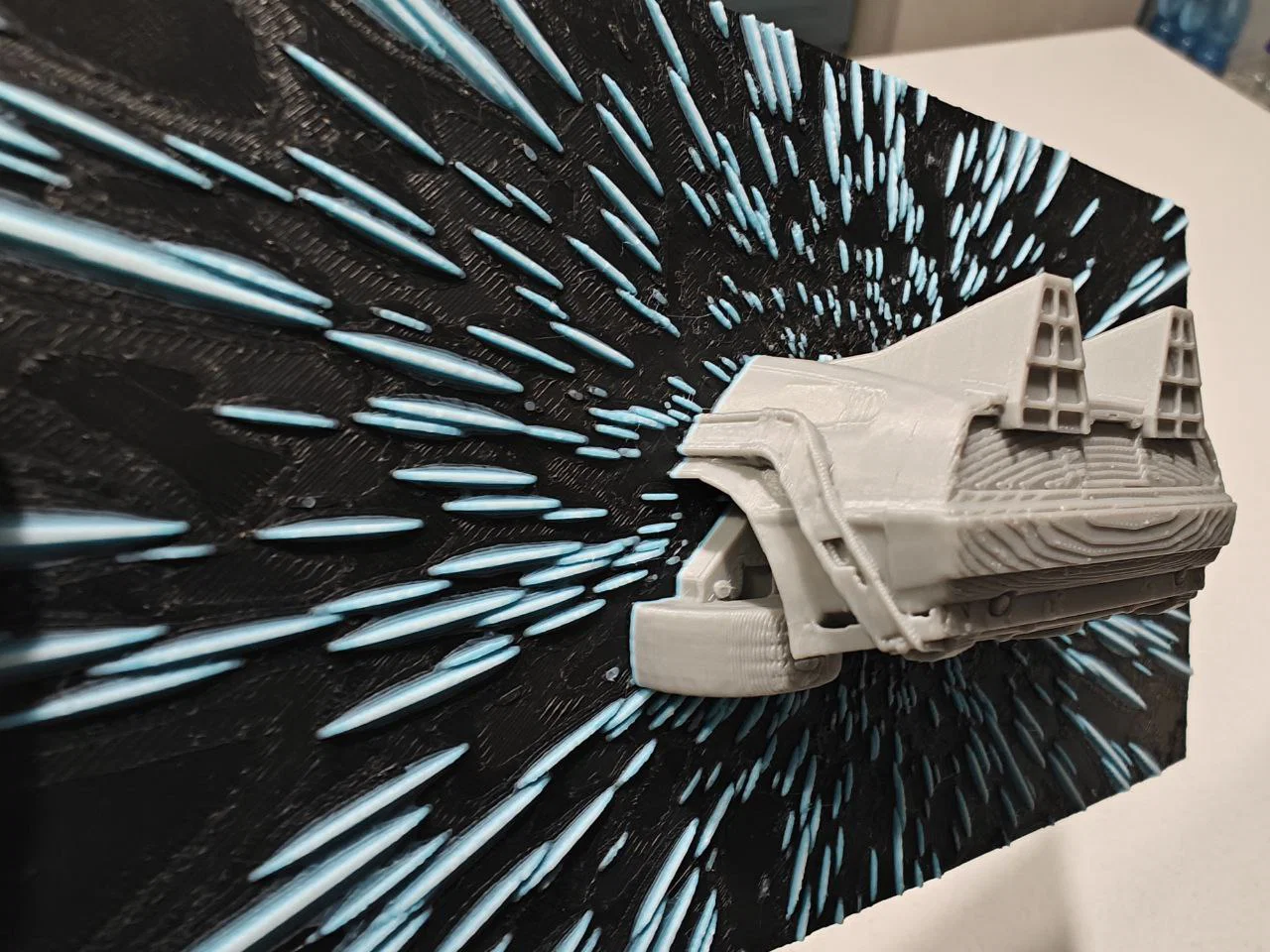 Với phần Delorean (1.92mm – 40mm): in 10% infill, layer height 0.2mm (nhưng thấp hơn thì tốt hơn), 3 vòng tường (wall loops), 3 lớp vỏ trên (top shell) và 3 lớp vỏ dưới (bottom shell).