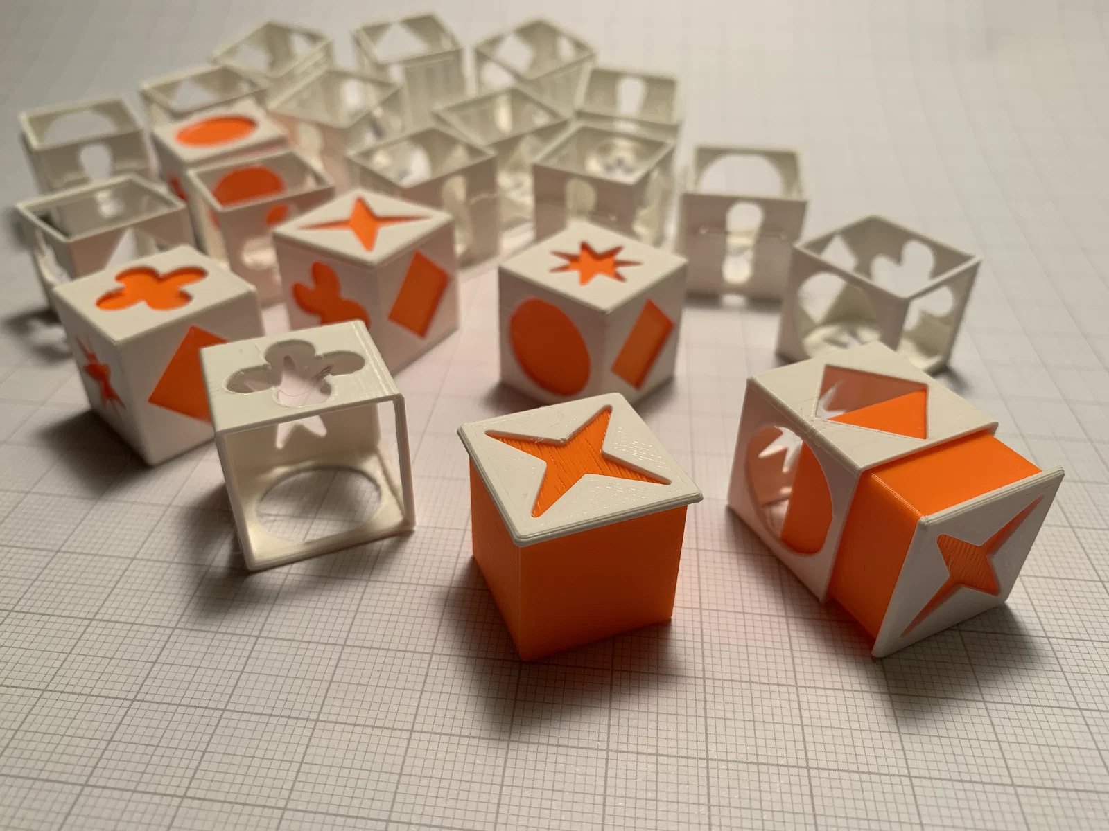 Trong thời gian dịch bệnh, mình có mua bộ game QWIRKLE bản gốc dạng các khối (cubes). Chơi mê quá nên tụi mình chơi hoài. Mình đã thiết kế phiên bản của riêng mình bằng Fusion360, mỗi cube gồm 2 phần: một phần là outer cube (vỏ ngoài) và một phần là inner cube (lõi bên trong). Inner cube là phần có màu.