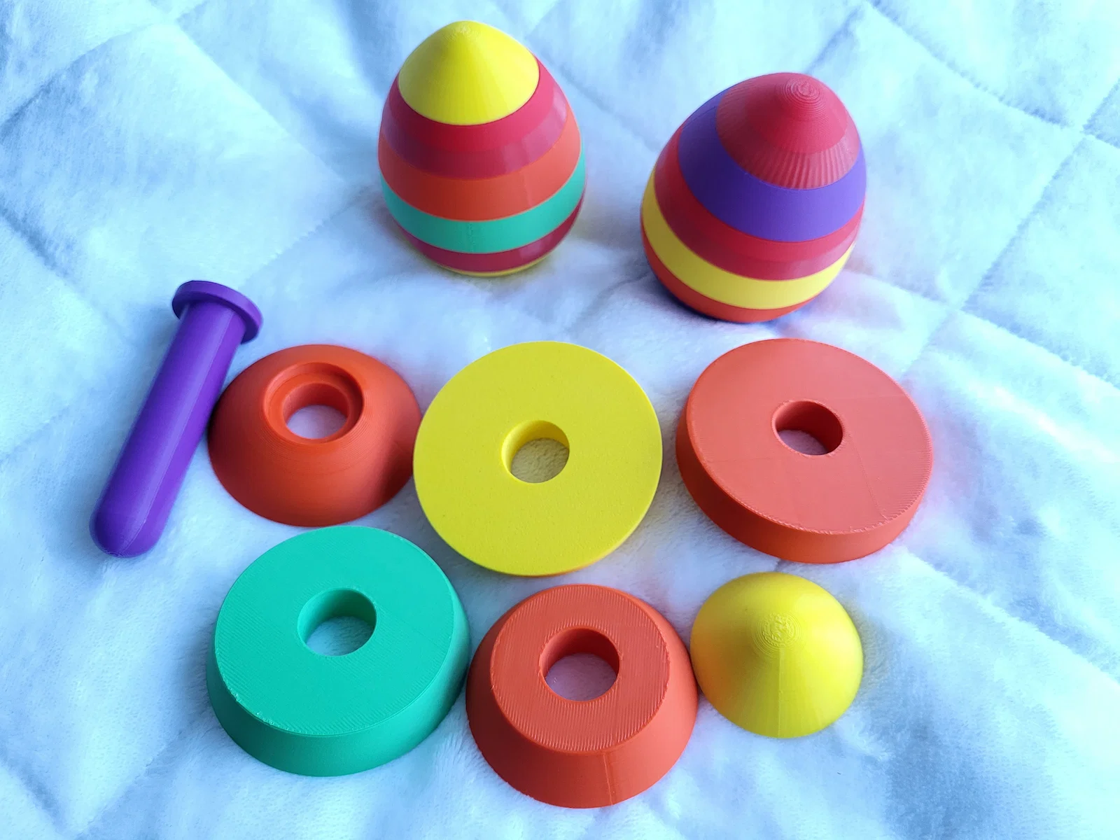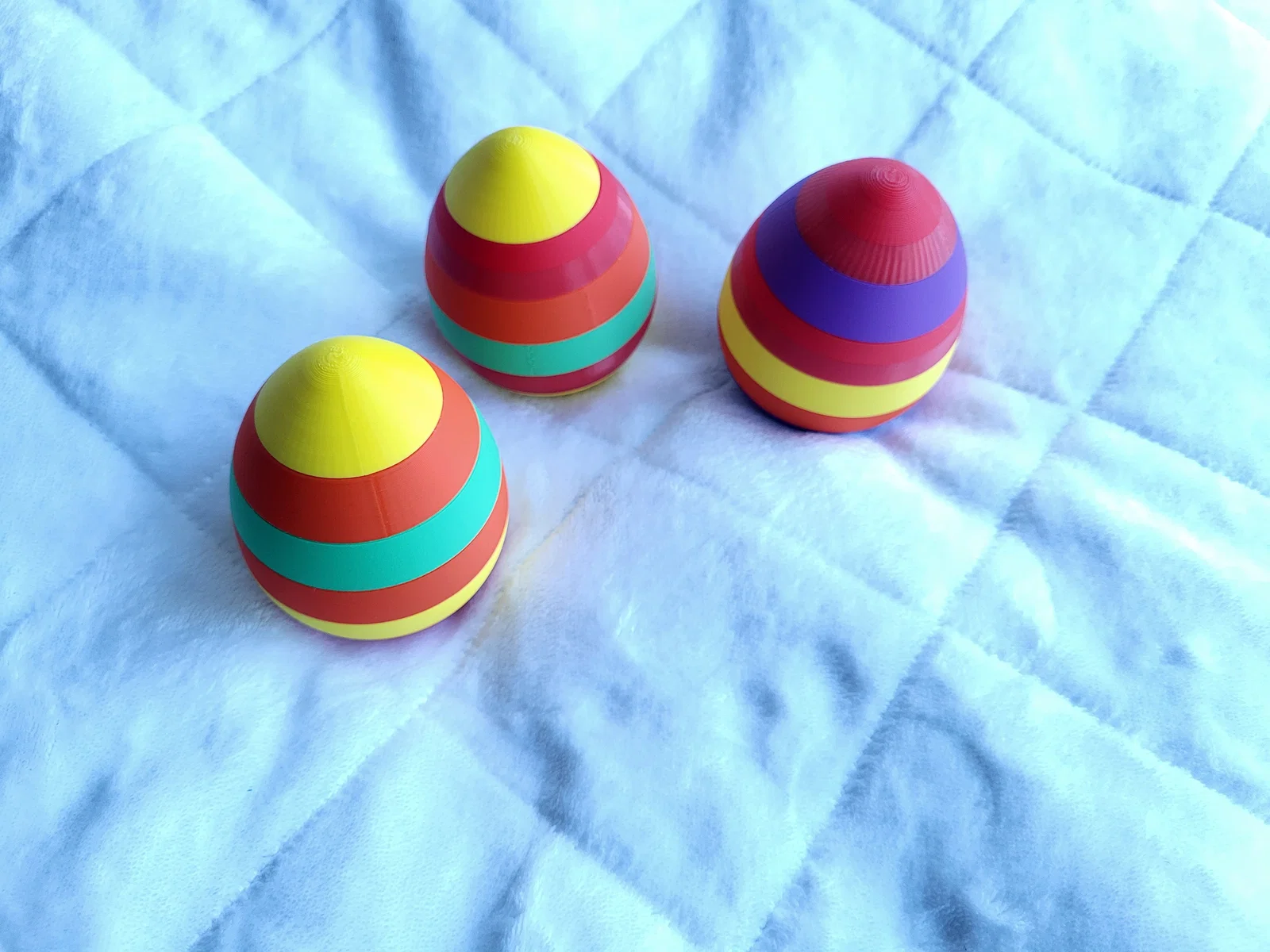 Trứng Phục Sinh dạng đồ chơi tương tác. Bản in khá chắc chắn nên chịu được cả khi bị xử lý hơi mạnh tay. Nên phối hợp nhiều màu cho đẹp. Chỉ cần đặt các phần lên những plate khác nhau và đổi màu. Phối sao cho ưng ý là tùy bạn. Tốc độ được giảm xuống vì mình in bằng filament Nebula PLA hoặc Prusament PLA.
