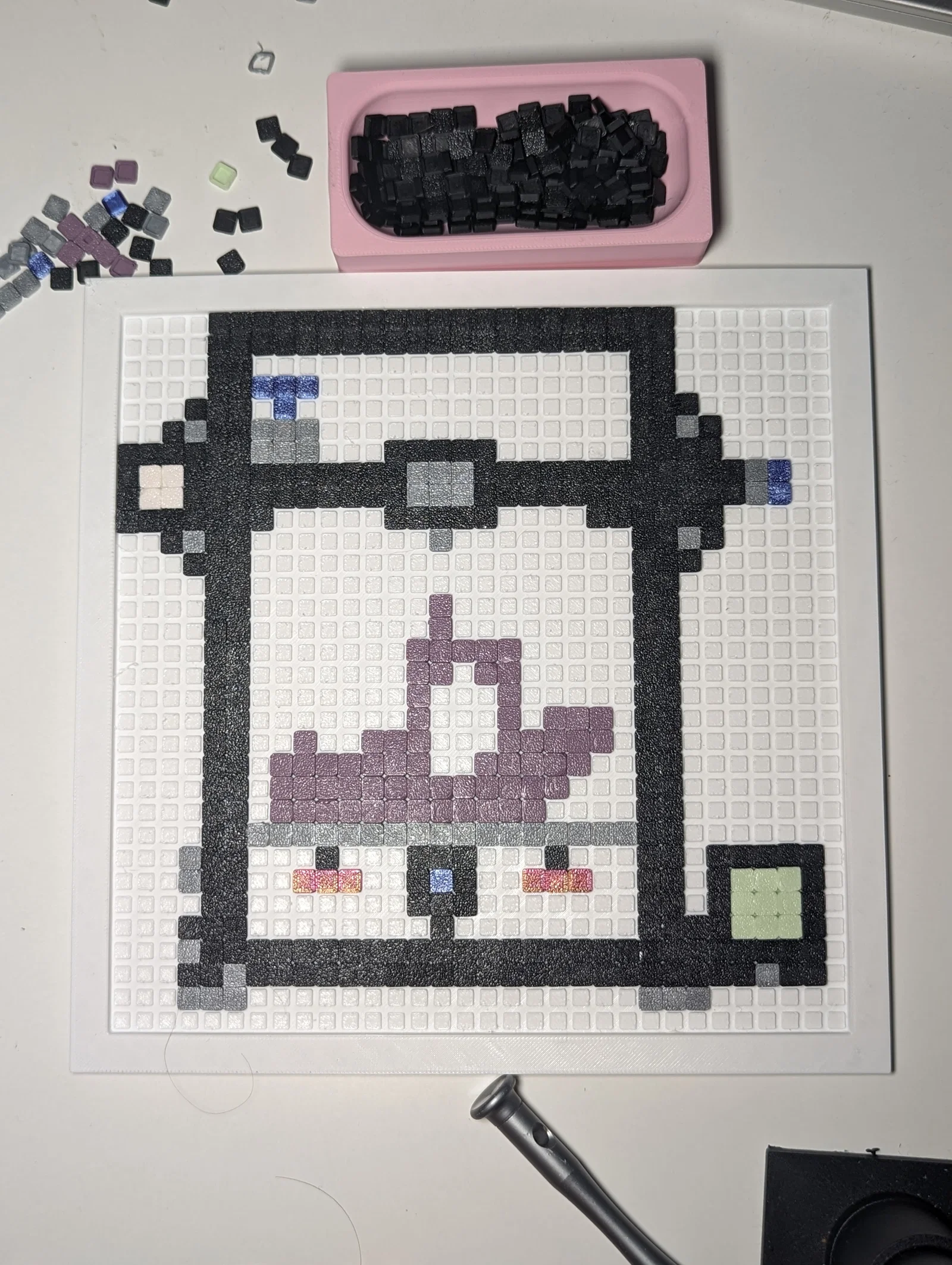 Mình khuyên bạn nên bắt đầu với bảng 5x5 và in thử một ít pixel để test tolerance. Mình thấy độ khít của pixel khi gắn lên peg phụ thuộc khá nhiều vào từng loại filament.