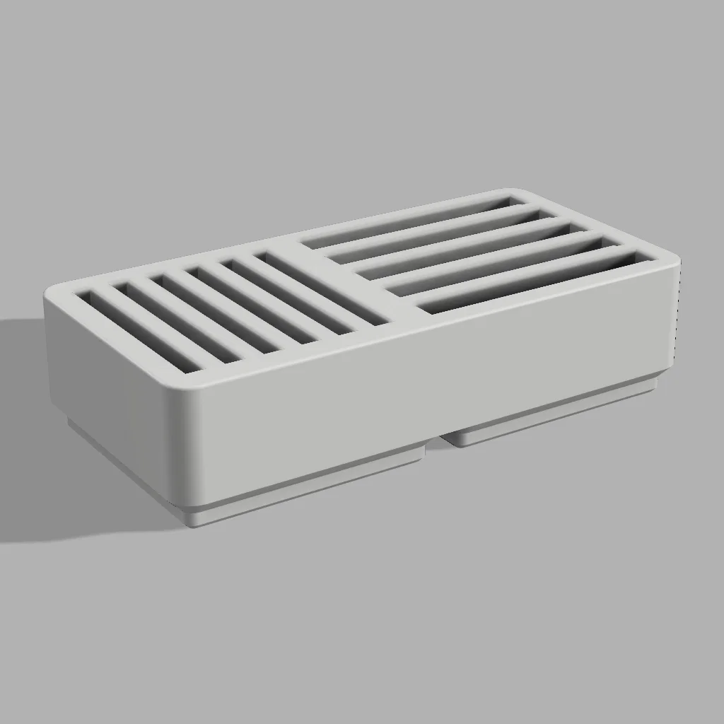 Về ý tưởng thì dựa trên mẫu remix mình đã làm trước đó để hỗ trợ CFexpress, nhưng lần này mình quyết định làm lại từ đầu và bỏ các khe micro SD. Mình cũng muốn lỗ gắn nam châm dạng press fit, nên kích thước là 6.1x2.1 thay vì kiểu lỗ lớn hơn để dán keo.