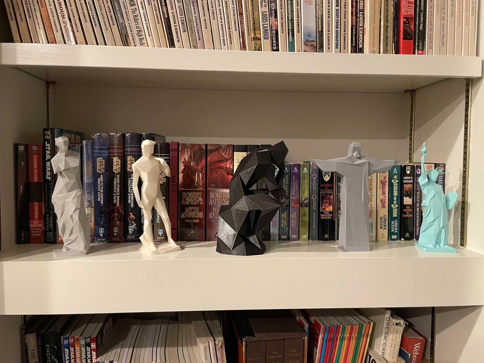 Việc sở hữu một mô hình mang tính nghệ thuật như thế này trong bộ sưu tập cá nhân sẽ tạo điểm nhấn thu hút mọi ánh nhìn. Nhờ phong cách low poly, các bề mặt của tượng được tạo thành từ những khối đa giác rõ ràng, giúp ánh sáng phản chiếu lên mô hình tạo ra các hiệu ứng đổ bóng rất bắt mắt. Bạn có thể in bằng nhiều loại vật liệu nhựa khác nhau, từ các loại nhựa PLA tiêu chuẩn cho đến các loại nhựa có hiệu ứng ánh kim để tăng thêm phần sang trọng và đẳng cấp cho thành phẩm cuối cùng.