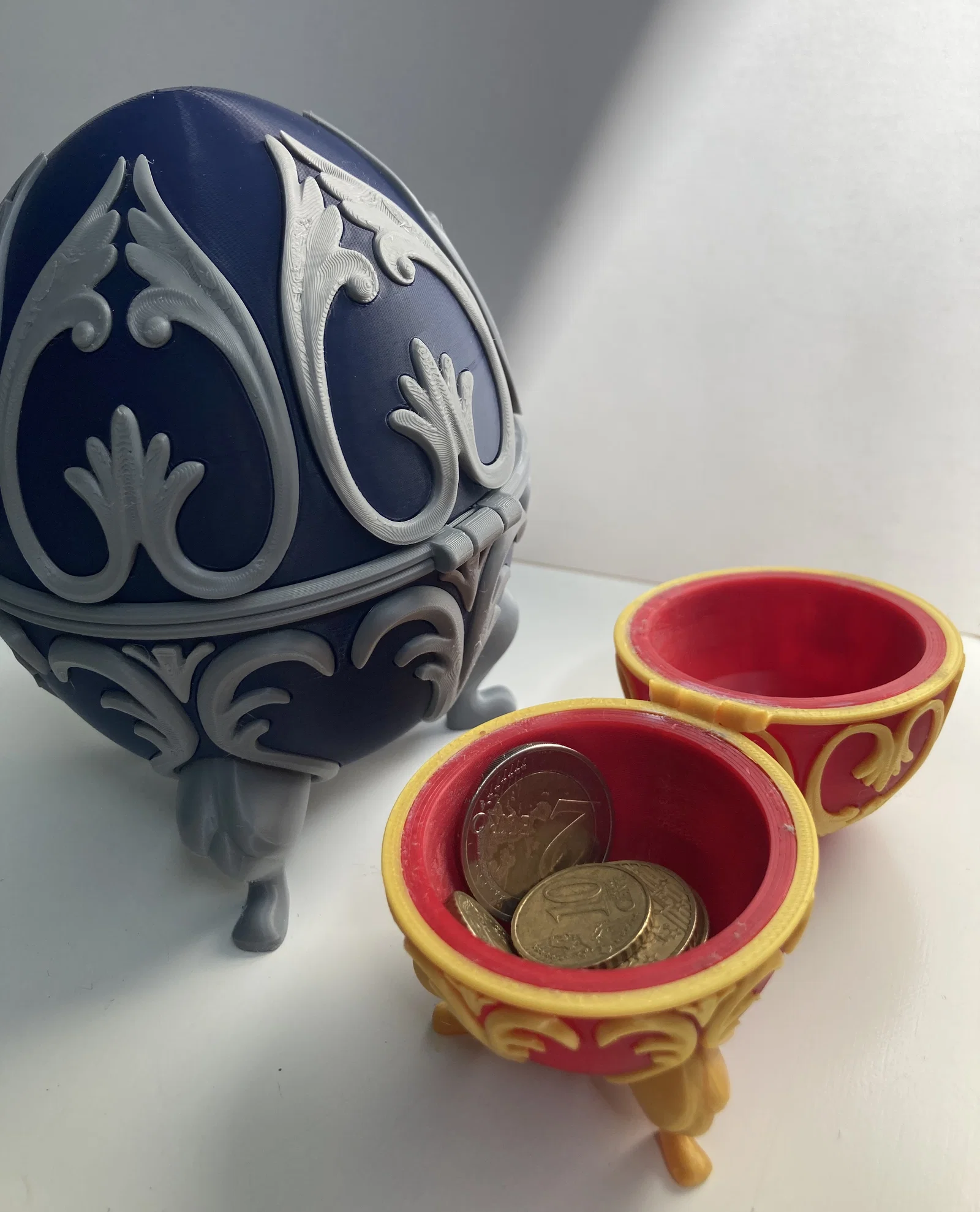 Mẫu trứng lấy cảm hứng từ các Faberge egg cổ điển, rất hợp để đựng quà vặt dịp Easter. Có tuỳ chọn scale 60% cho bản nhỏ, Part O-2 cần supports, và có bản hinge dùng filament để ghép.