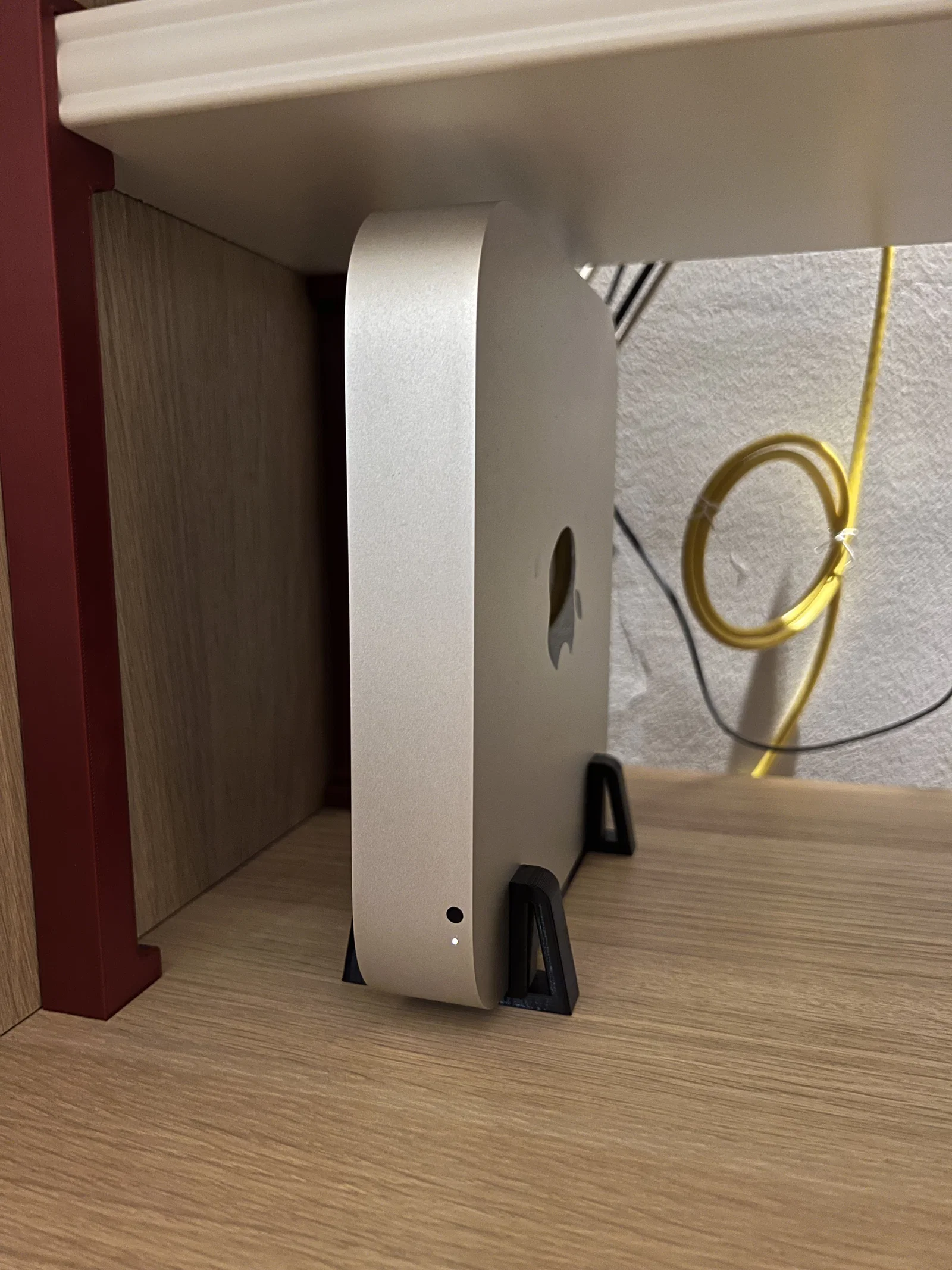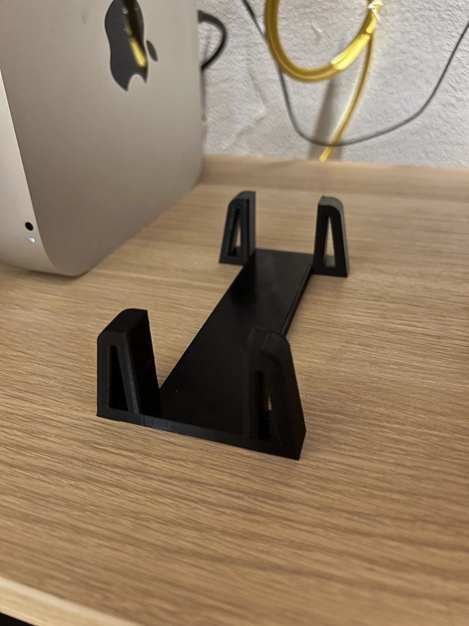Chân đế dựng đứng đơn giản cho Mac mini, dùng được cho các đời 2010–2023 (Intel và Apple Silicon M1/M2) nhờ chung kích thước vỏ máy. Bản này được rút ngắn, chỉ nâng máy 5mm để tổng cao 20.2 cm và gộp hai feet thành một khối cho dễ di chuyển.