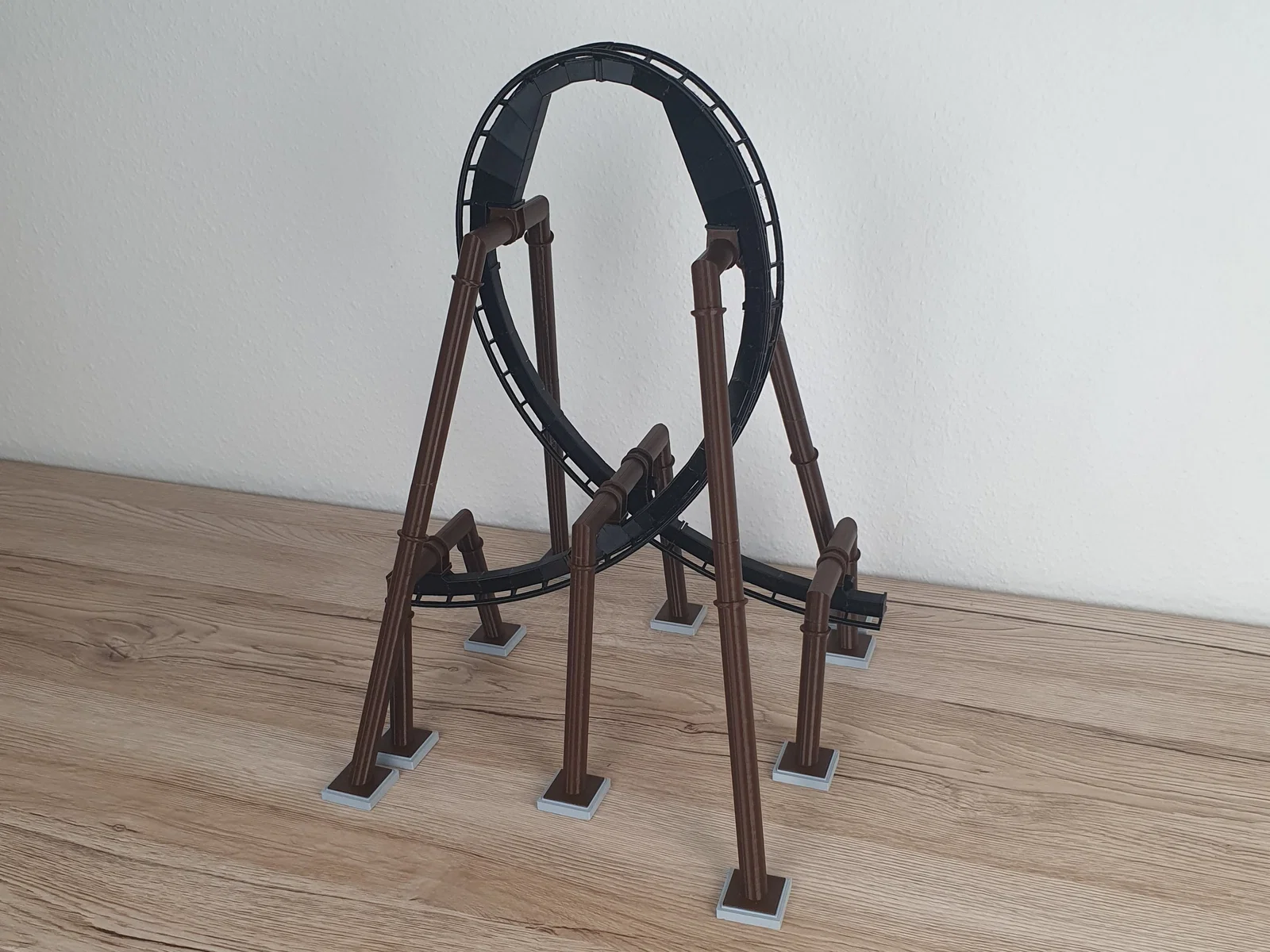Mô hình vòng lộn ngược (Inverted Loop) tỉ lệ 1:64 dùng B&M track, dựa theo Black Mamba ở Phantasialand. Có hướng dẫn in/lắp ráp chi tiết, khuyến nghị dùng dây 1.0 mm để track chắc và dễ ráp hơn.