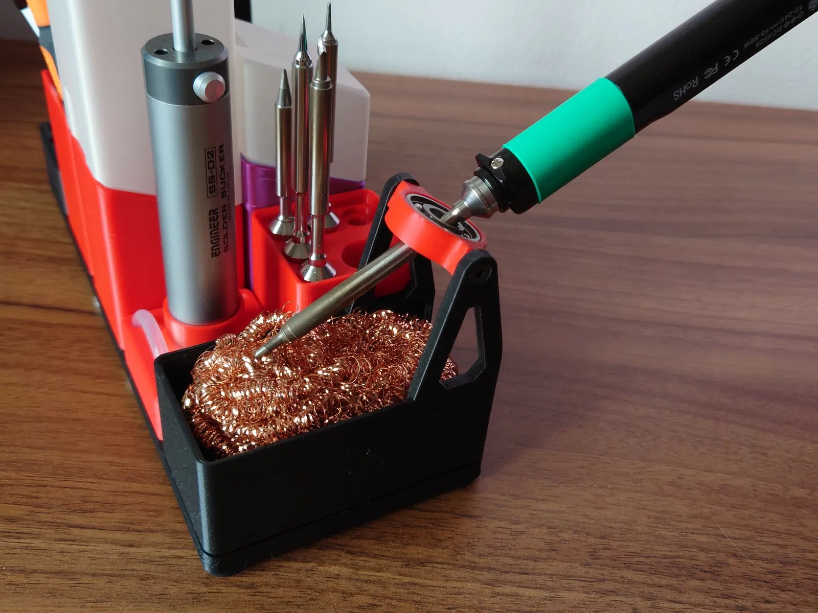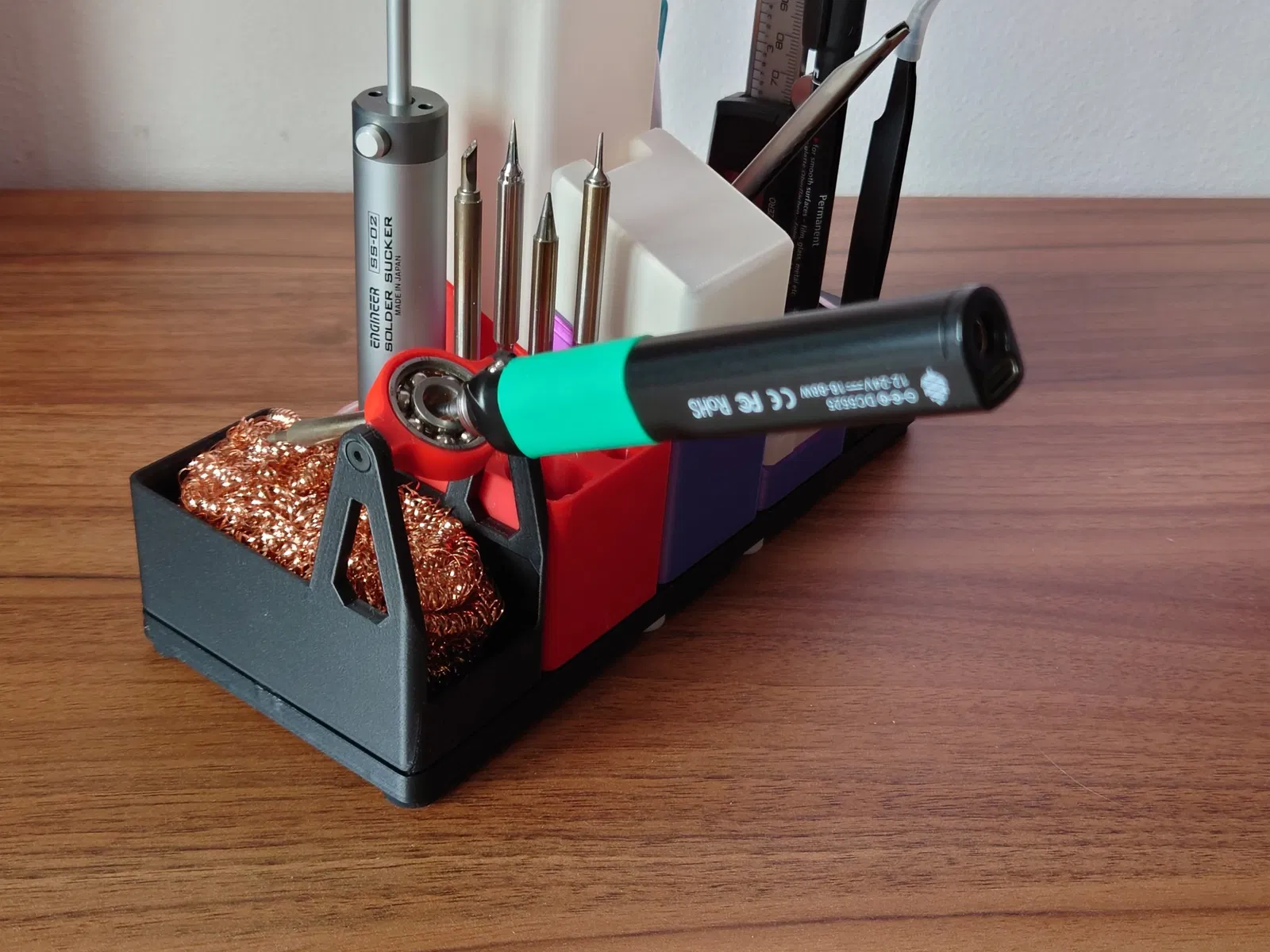 Đây là một mô hình Gridfinity nhỏ mà tôi đã làm có thể giữ mỏ hàn đang hoạt động của bạn, và có một khay cho loại bông lau bằng đồng.