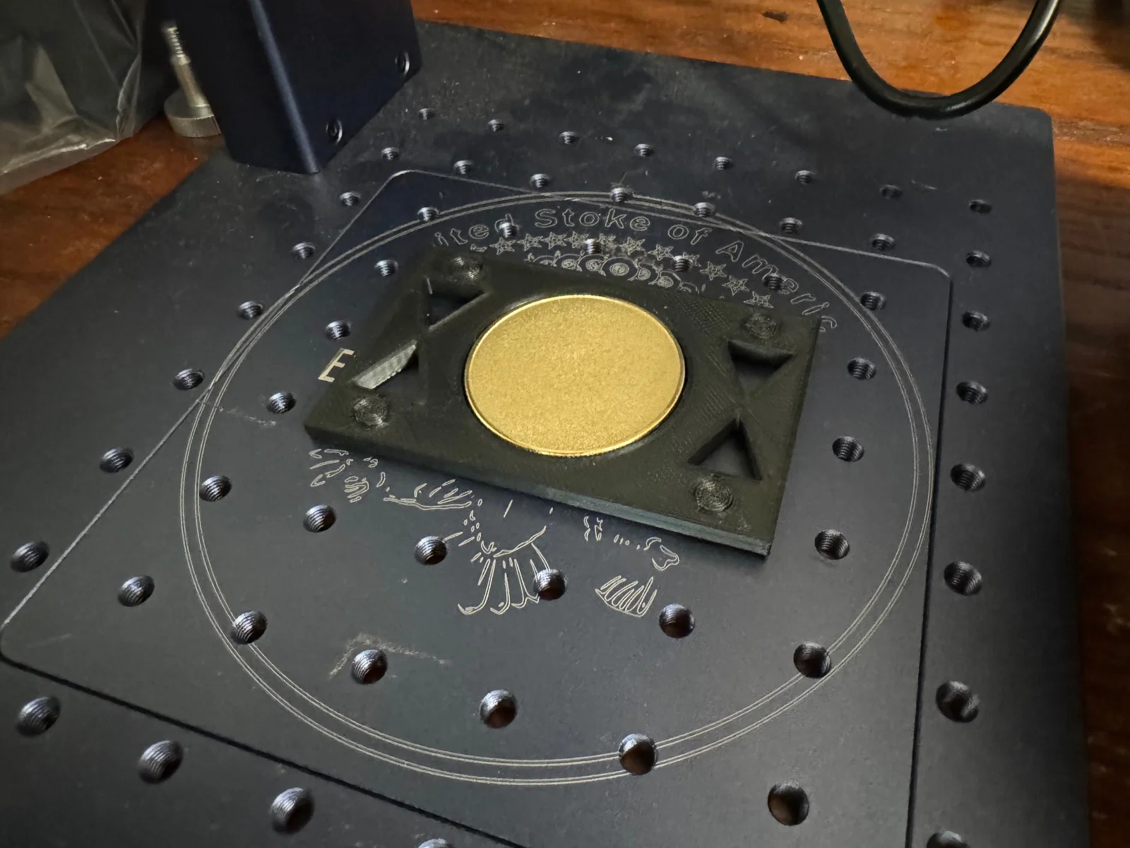 Jig giữ đồng xu 40mm cho máy laser sợi quang Gweike G2