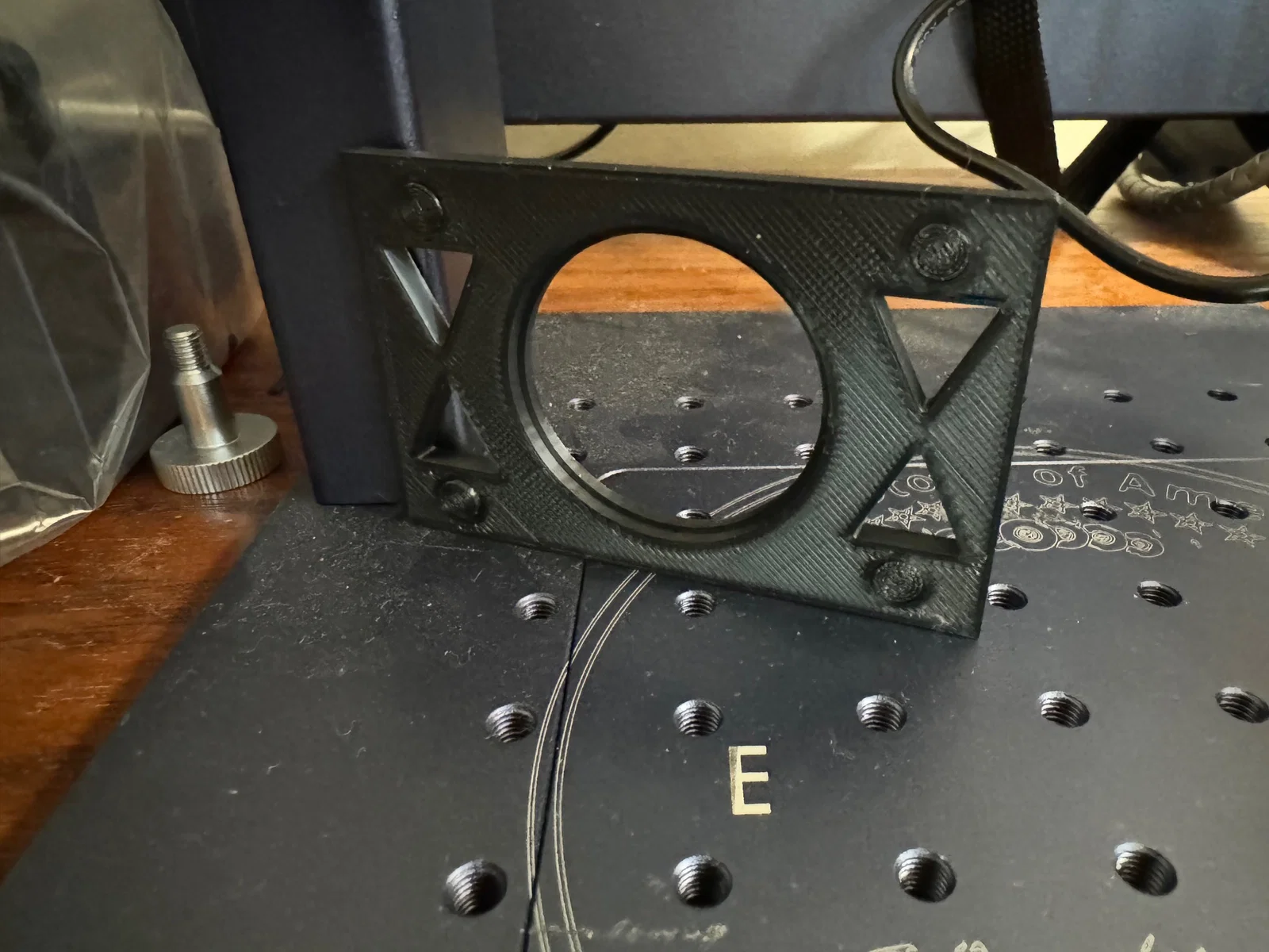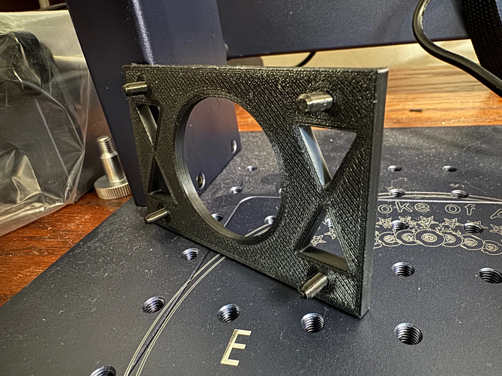 Không phải là khó để giữ một miếng brass phẳng khỏi bị xê dịch, nhưng đôi khi vẫn có chuyện. Máy có thể bị va chạm. Thiết kế đơn giản thôi. In rất nhanh. Mình làm cái của mình bằng PLA thường.