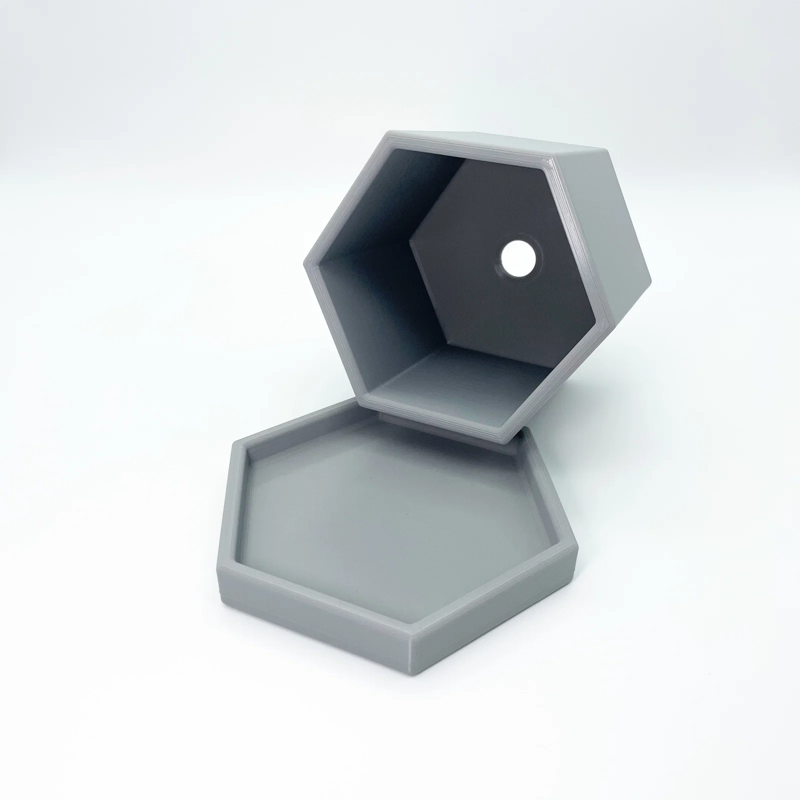 Mẫu 3D printable này là một chậu cây lục giác, rất hợp để trồng các loại cây nhỏ như succulents, thảo mộc, hoặc hoa nhỏ. Thiết kế dạng lục giác với đáy phẳng, có lỗ thoát nước và phần lỗ này nằm gọn bên trong khay hứng nước.