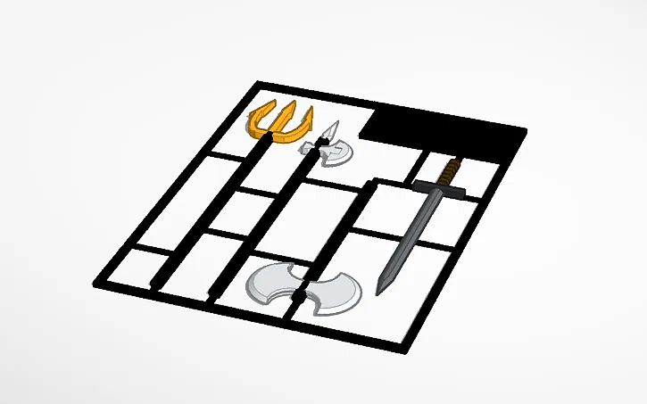 - Bộ sản phẩm bao gồm 4 loại vũ khí riêng biệt: Kiếm, đinh ba, rìu chiến hai lưỡi và búa rìu chiến.