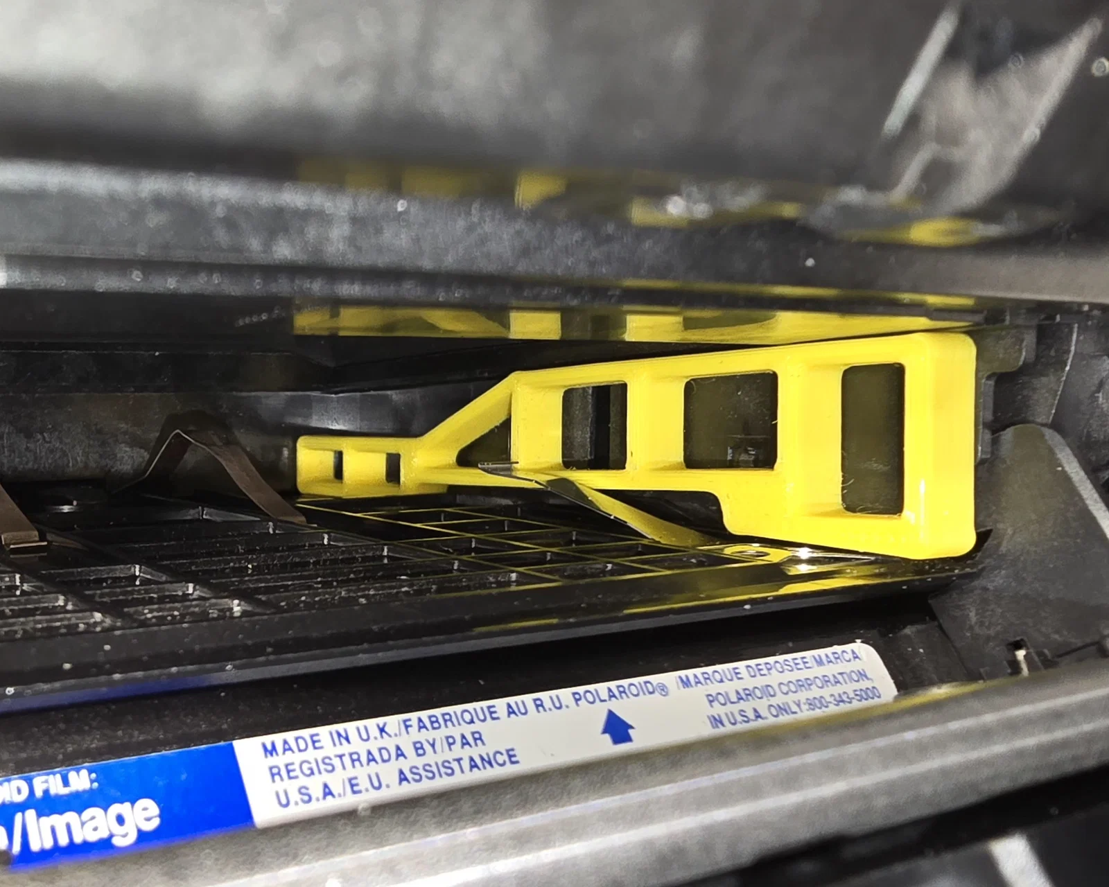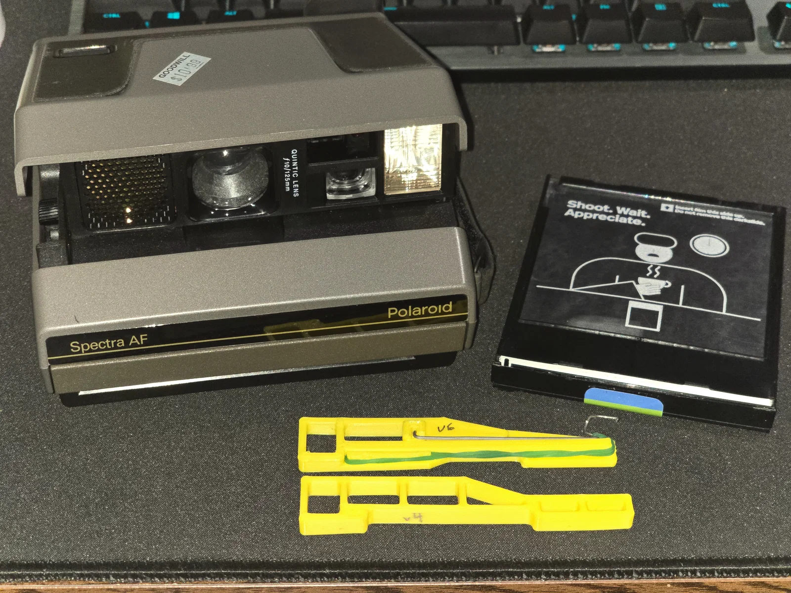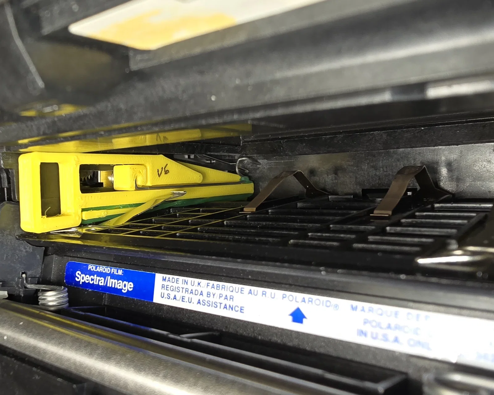 Mình chưa test coi cái này có khắc phục được lỗi spread khi pack film bị lệch hẳn qua bên trái không (tại “kinh phí” á), nên rất cần một pack film để test (dùng vỏ cartridge film 600 đã qua sử dụng, pin còn tốt và còn dư vài tấm) vì đây là bản đầu tiên, mà việc bẻ cái pick arm mới cho đúng cũng hơi cực.